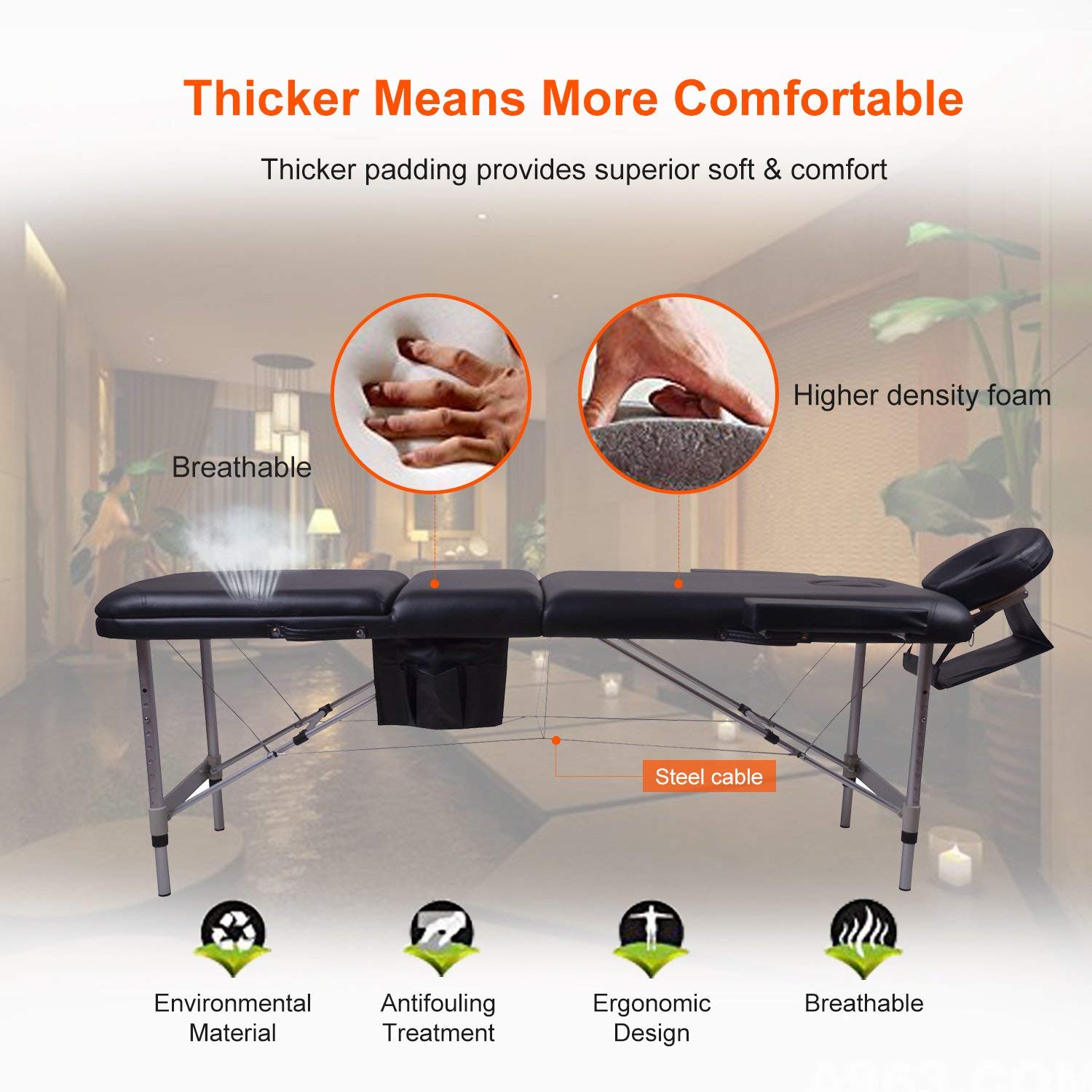 - Soft and Comfortable: This massage table with thick, high density foam will ensure your clients whole body is supported and comfortable throughout every treatment