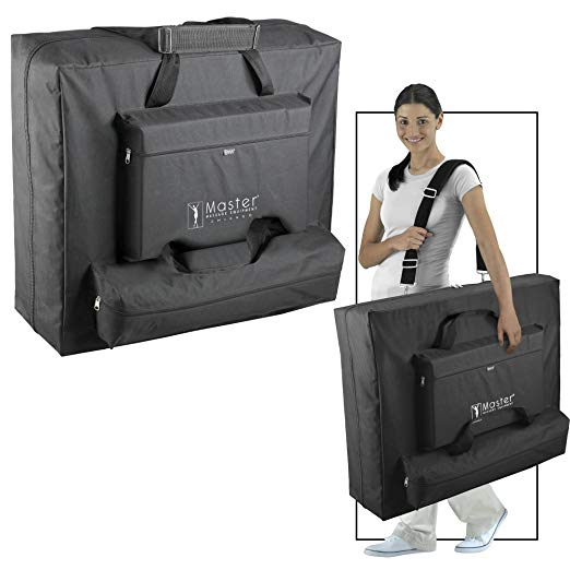 Includes features like a sturdy Ergonomic shoulder strap, adjustable cross-body straps, 3 different ergonomically placed reinforced handles that enable balance and easy maneuvering, and two large outside storage compartments for your massage therapy accessories.