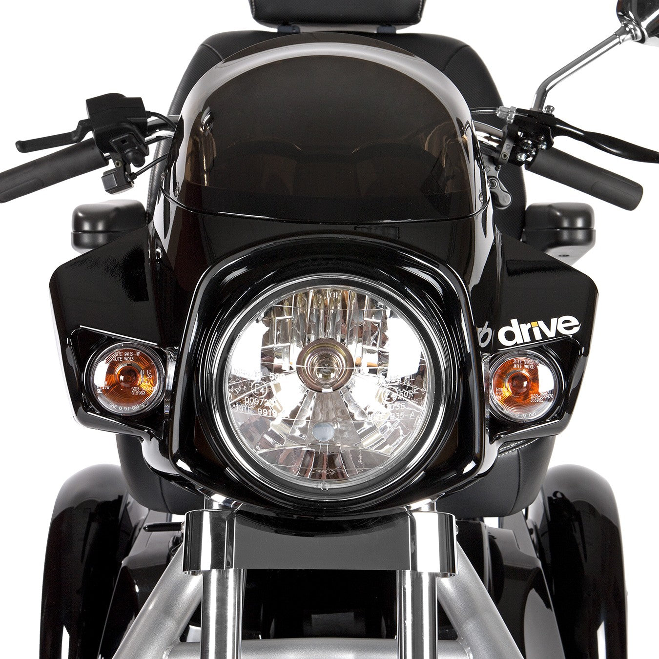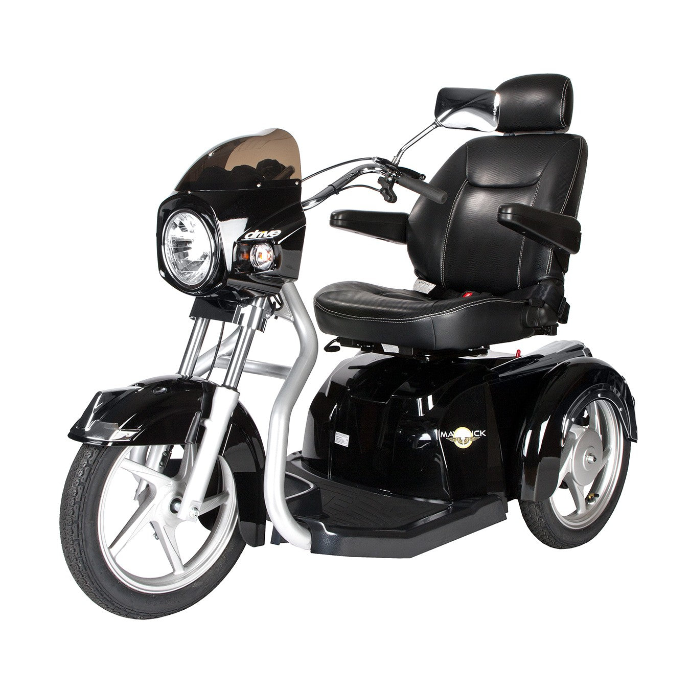 The ground-breaking, head-turning new Maverick from Drive Medical combines distinctive styling with best-in-class performance unheard of in a mobility scooter. The Maverick was born to be wild! Experience the thrill of the open road with its unique appearance which echoes the classic look of a motorcycle cruiser. Pair that with a 9.5 mph top speed and an unheard of 30 mile range and you’ve got the ultimate combination of style and substance–no helmet required! Get a look, features and performance you never knew were possible in a scooter—experience the Maverick