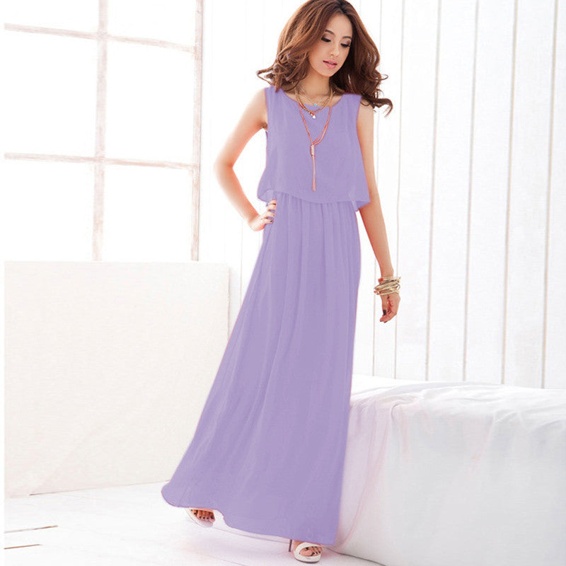 Maxi Dress 2016 Summer Sun Dresses Solid Sleeveless O-Neck Floor-Length Chiffon Long Beach Dress Women Elegant Vestido Plus Size