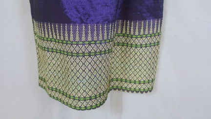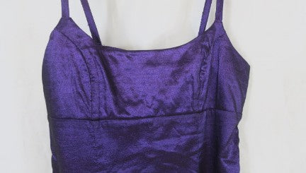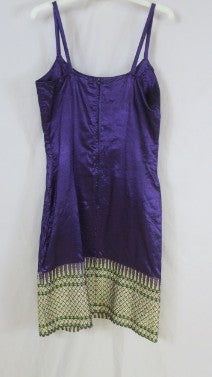 Mel issa M Purple Satin scoop neck spaghetti strap pencil dress with green pattern accent at hem 90's chic vintage