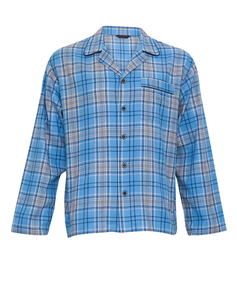 "Soft, cosy and warm brushed twill for a comfy fit with solid fabric trims. Top: 90% Cotton + 10% Polyester One piece rounded collar, square pocket at the left hand side chest as worn and pointed peak full open placket with buttons attached. This model is sold separately as well as a Pajama Set to give extra choice in pant styles, top and sizes. WARNING – KEEP AWAY FROM FIRE AND FLAMES Machine wash, wash at 30°, inside out, wash dark colors separately, do not soak, do not iron trim, save energy "