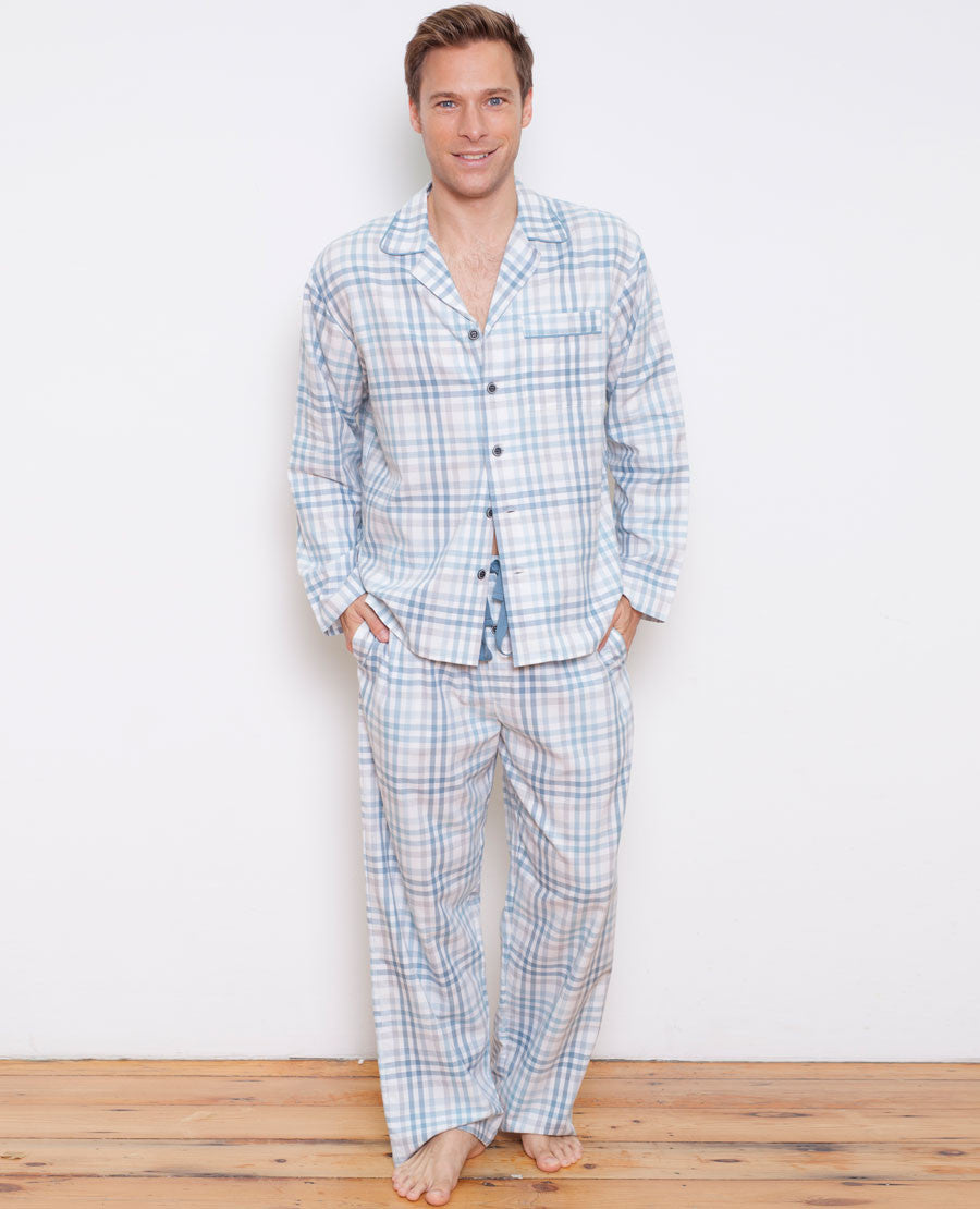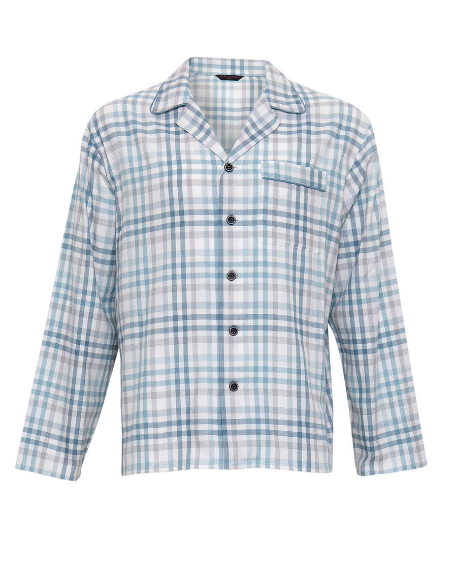 "Super soft, warm and cosy Pyjama top with solid fabric trims. Top: 96% Cotton + 4% Polyester Pointed peak full open placket with buttons attached, self-fabric square pocket at the left hand side chest as worn and one piece rounded collar. This model is sold separately as well as a Pajama Set to give extra choice in pant styles, top and sizes. WARNING – KEEP AWAY FROM FIRE AND FLAMES Machine wash, wash at 30°, inside out, wash dark colors separately, do not soak, do not iron trim, save energy "