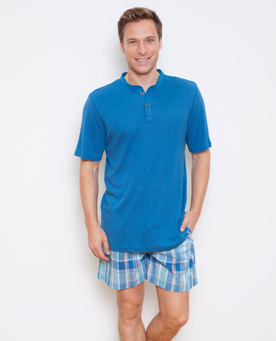 "Warm, lightweight cotton for super soft feel Pyjama short with solid fabric trims. Short: 100% Cotton Twill tape functional drawcord, functional fly with buttons attached and self-fabric fully elasticated waistband. This model is sold separately as well as a Pajama Set to give extra choice in pant styles, top and sizes. WARNING – KEEP AWAY FROM FIRE AND FLAMES Machine wash, wash at 30°, inside out, wash dark colors separately, do not soak, do not iron trim, save energy "