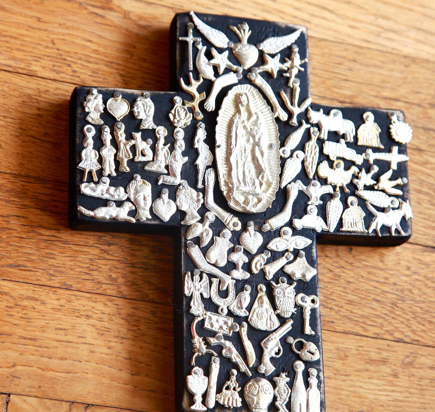 Milagros-Milagro Cross-Mexican Folk Art-Lady of Guadalupe Milagro-Sacred Heart