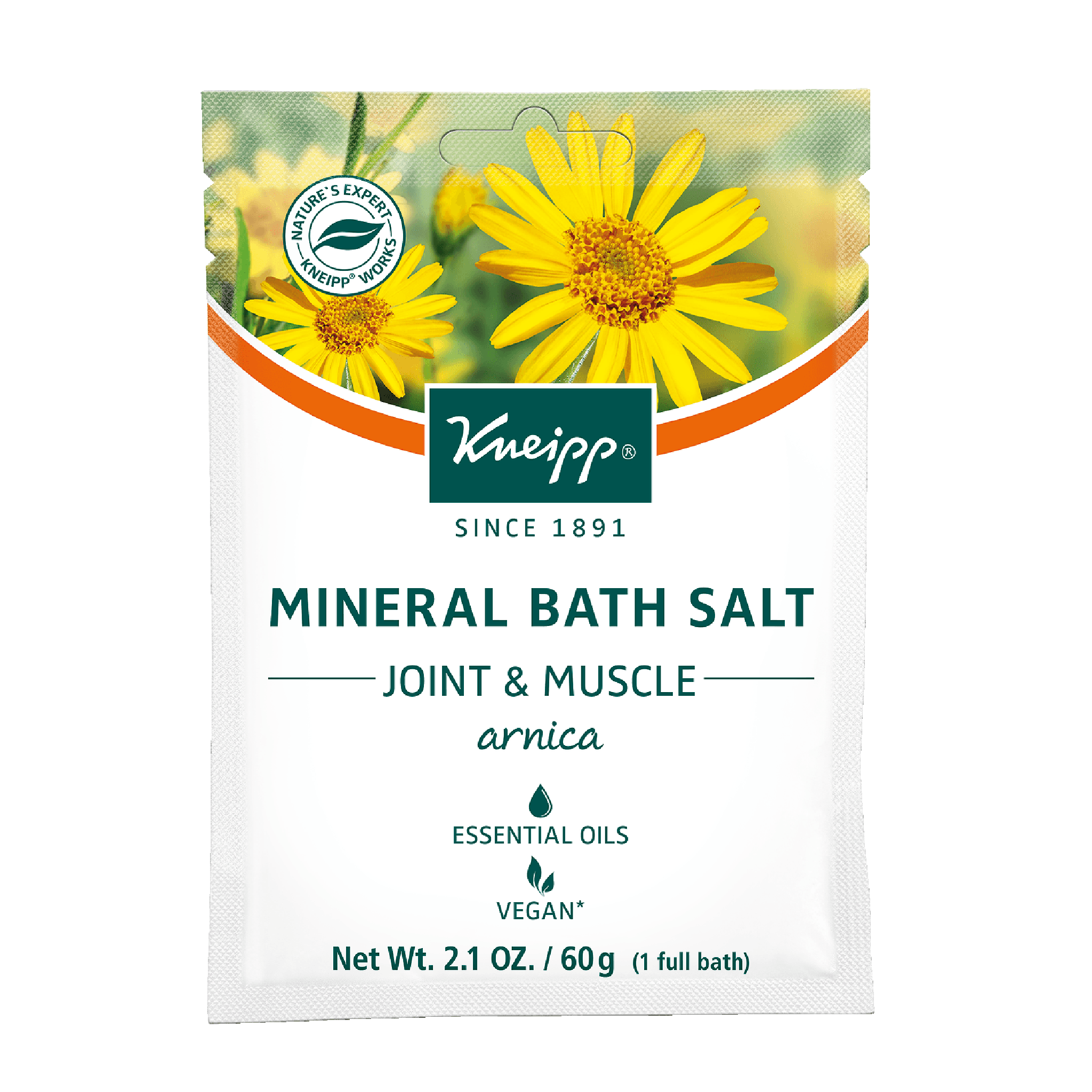 The KNEIPP® ARNICA MINERAL BATH SALT - “JOINT & MUSCLE” with valuable arnica extract and natural essential oils of cabreuva, rosemary and pine species provides you with a beneficial, warming and invigorating bath experience. After soaking in the arnica bath salt for 15 to 20 minutes, you can start to feel relief as your aching joints and muscles are soothed with the aid of one of Sebastian Kneipp's favorite plants.