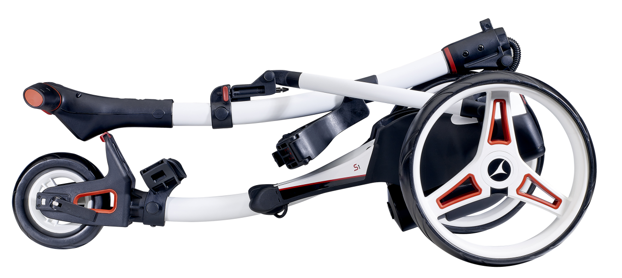 The brand new 2016 Motocaddy S1 Digital Electric Golf Trolley with Lithium Ion is at the height of golf trolley technology and continues the success left by the original S1 in 2006. The S1 was the UK’S Fastest powered selling golf trolley and technicians have improve the S1 further by adding the highly efficient digital platform taken from the highly successful S3 model. This has resulted in the S1 digital being increasingly easier to use with the on and off switch being integrated to control the speed and distance making it much simpler to use. The trolley features 9 installed speed settings which allow the trolley to smoothly accelerate towards your destination and gradually stop once you reached your desired target. Motocaddy have created an excellent golf trolley in the S1 Digital, combining style, technology and usability to really enhance this trolleys performance.