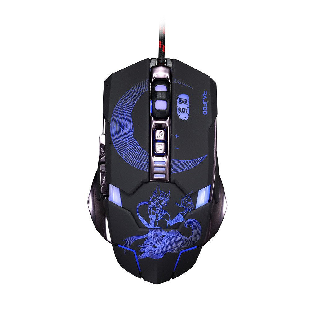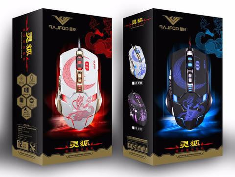 Mute Gaming Mouse 3200DPI with 4 Level Adjustment 2 Color Breathing Backlight 7 Key Smart Macro Definition Gamer