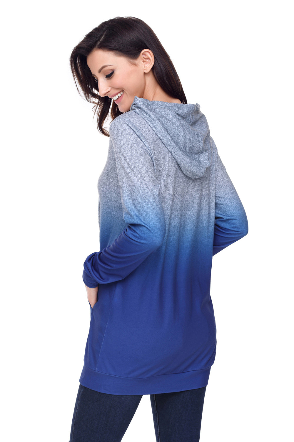 Ombre Hoodie Sweatshirt for your lady weekend! The ombre design is unique and hits the fashion, slim fit style, hooded back with drawstring, long sleeve and kangaroo pocket front. High quality knit fabric made to ensure a comfortable feeling. Perfectly to pair with any jeans, capri pants or yoga leggings.