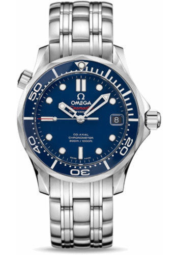 36.25 mm stainless steel case with helium escape valve, screw-in crown, unidirectional rotating blue bezel, domed scratch-resistant sapphire crystal with anti-reflective treatment on both sides, blue dial, self-winding chronometer Omega 2500 movement with Co-Axial Escapement and date, approximately 48 hours of power reserve, stainless steel bracelet. Water resistant to 300 m.
