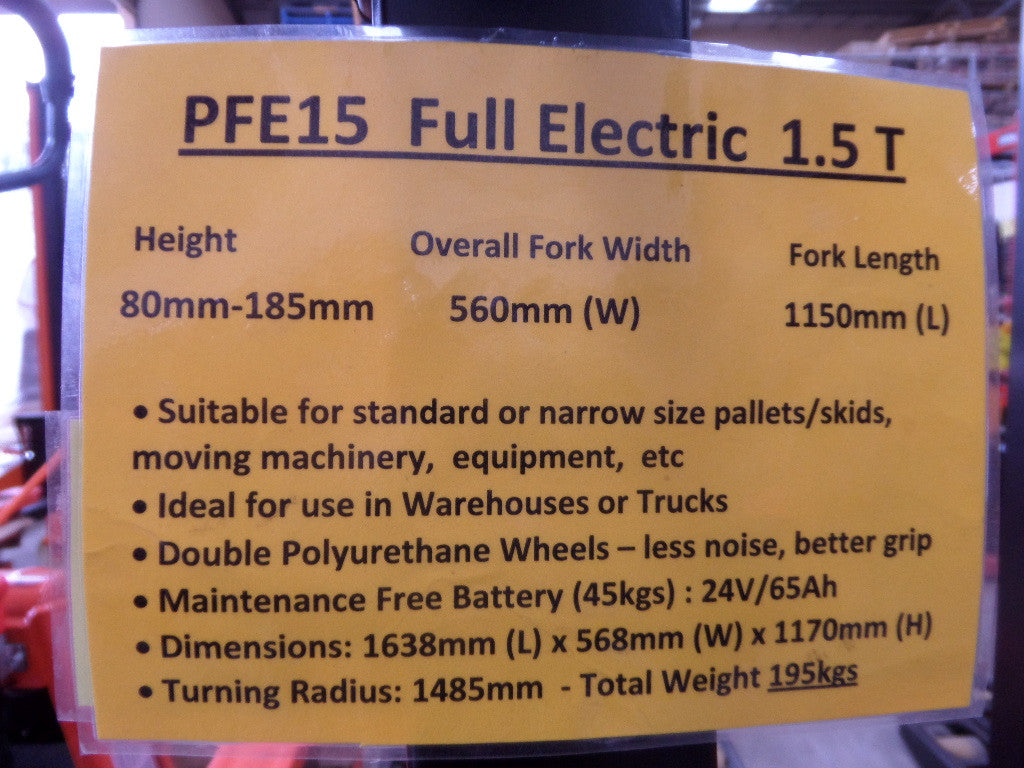 - Fork Width 560mm (W) x Fork Length 1150mm (L)