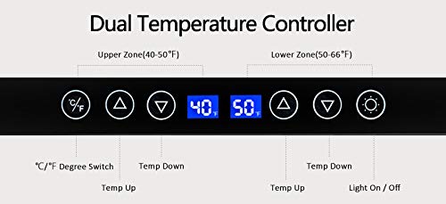 CONTROL TEMPERATURE TO YOUR NEEDS: Dual zone design with two separate temperature control (upper zone temperature range : 40 to 50 degrees Fahrenheit, lower zone temperature range : 50 to 66 degrees Fahrenheit. )provides a perfect storage environment which to help your favorites cool down to the best flavor.