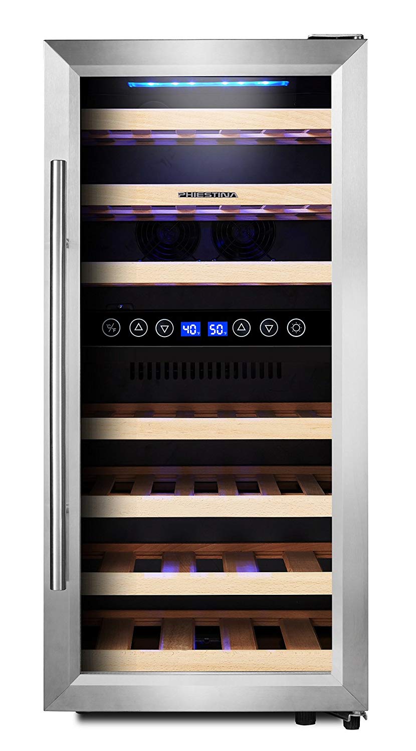 Phiestina PH-CWR100SP 33 Bottle Wine Cooler Dual Zone Compressor Cooling | Stainless Steel & Glass Door with Handle