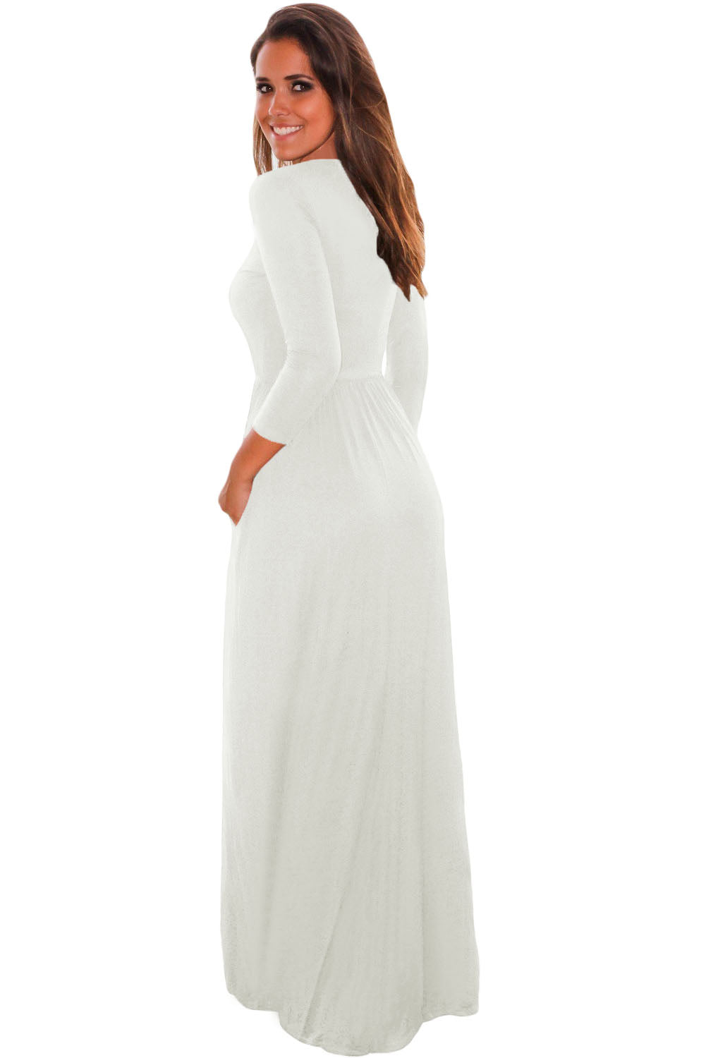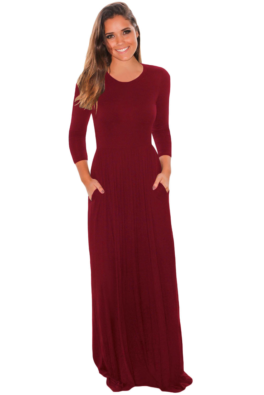 You're going to love our new arrival Pocket Design 3/4 Sleeves Maxi Dress! The amazing fit and basic color makes this dress a must have. It has round neckline, slim fitted bodice that elastically cinched at empire waistline, maxi flowing skirt subtly pleated, and side pocket design featured. Best part? You can accessorize as much as you want!