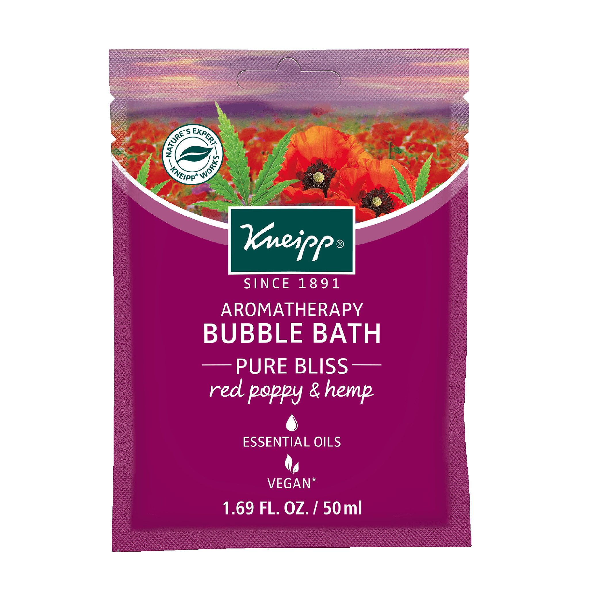 The KNEIPP® RED POPPY & HEMP AROMATHERAPY BUBBLE BATH - “PURE BLISS” with natural oils of red poppy and hemp may provide you with a sense of well-being and moments of joy. The atmospheric, cheerful fragrance can relax body and soul when everyday life becomes stressful and tense.