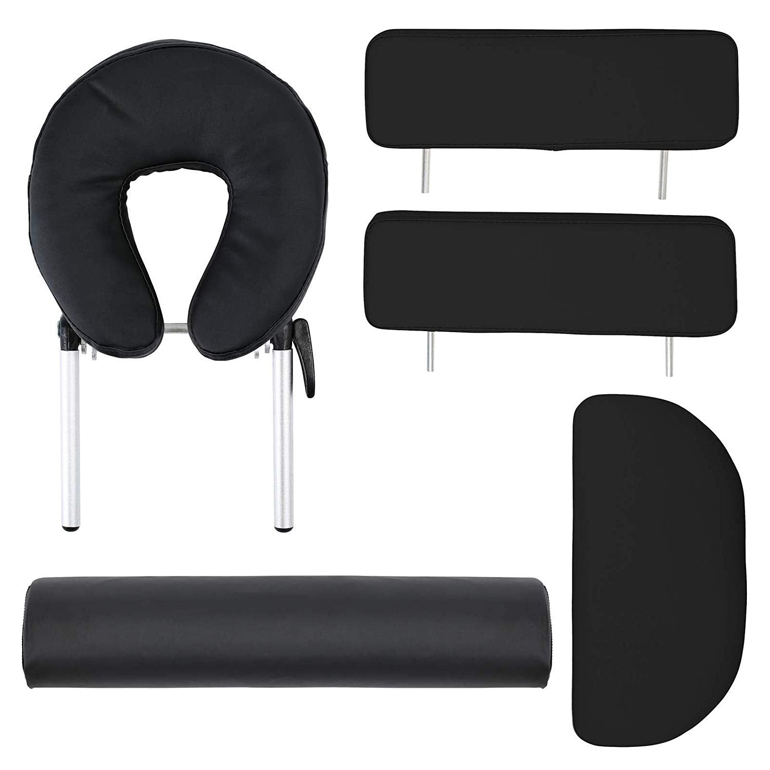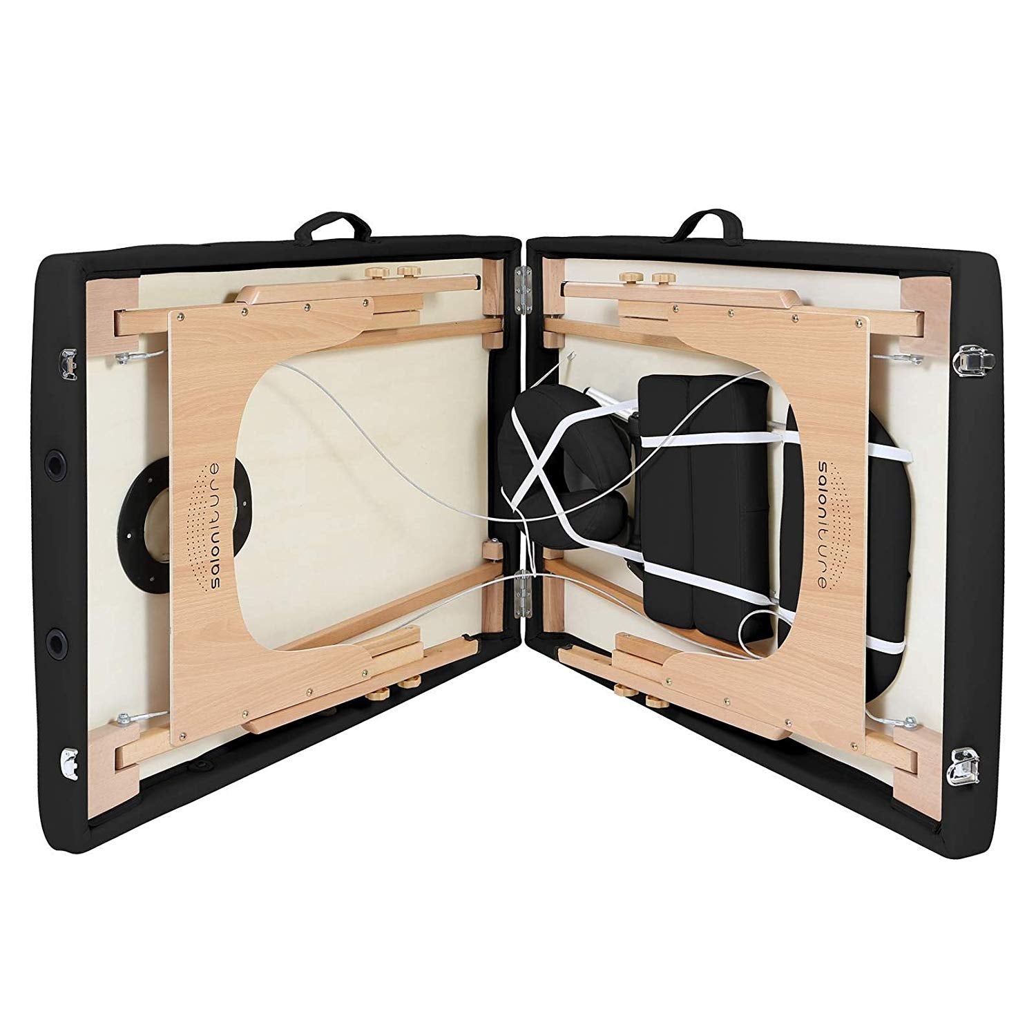 Saloniture Portable Folding Massage Table with Aluminum Headrest - Black