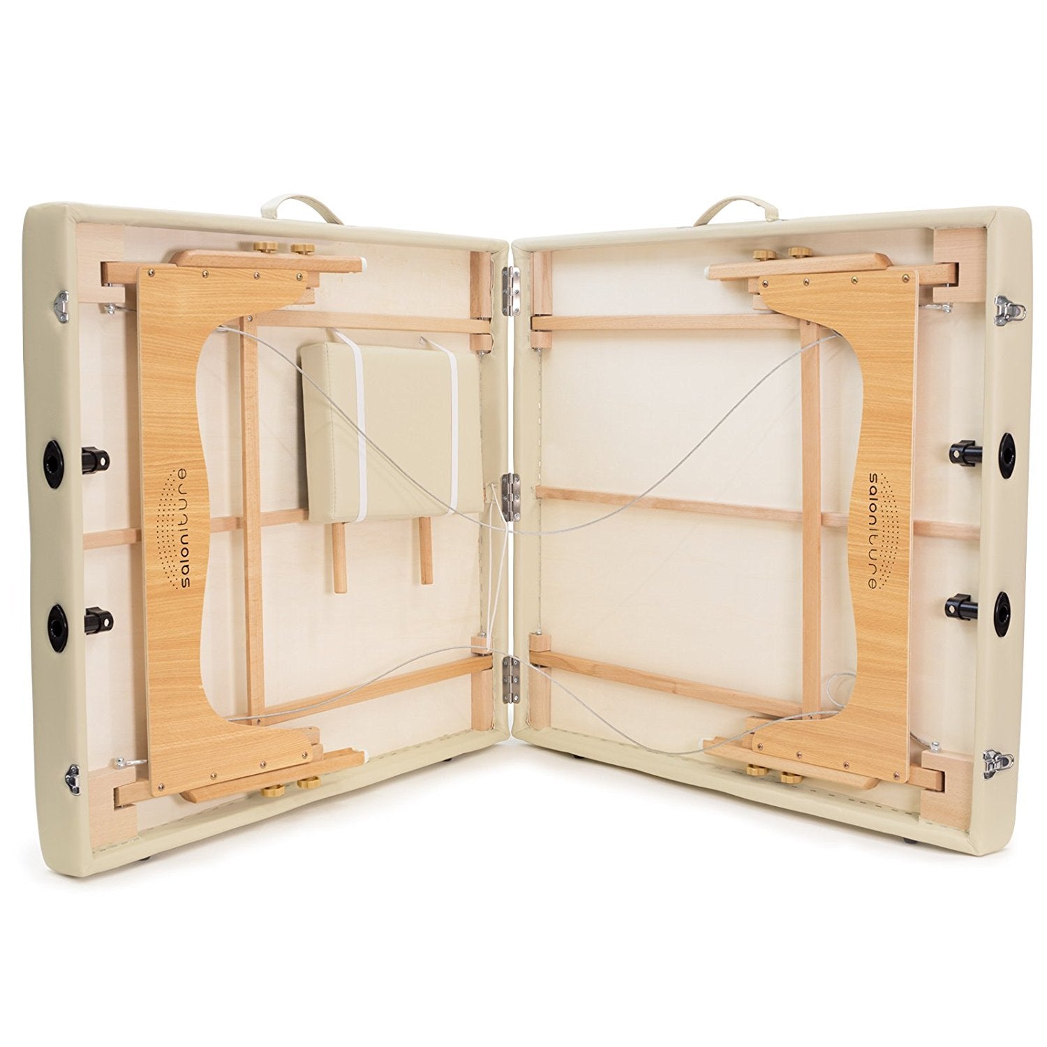 This Saloniture portable low stretching massage table combines luxurious comfort in a convenient, fold-and-carry design ideal for both certified physical and massage therapists as well as at-home bodywork enthusiasts.