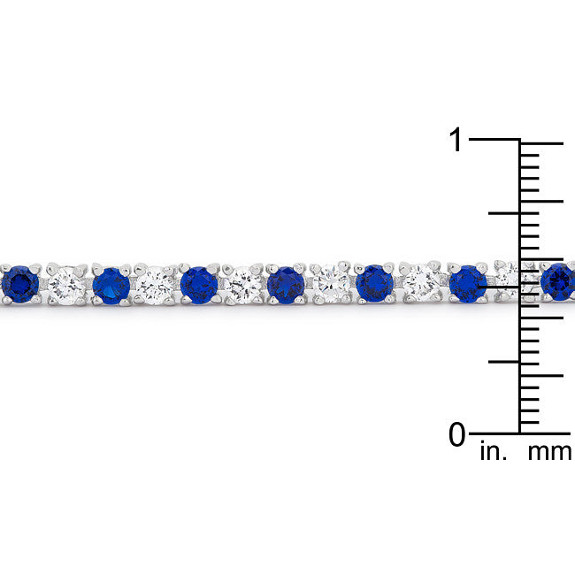 Genuine Rhodium Plated 7 Inch Tennis Bracelet with Round Cut Sapphire Blue and Clear Cubic Zirconia in a Prong Setting and a Box Clasp Polished into a Lustrous Silvertone Finish