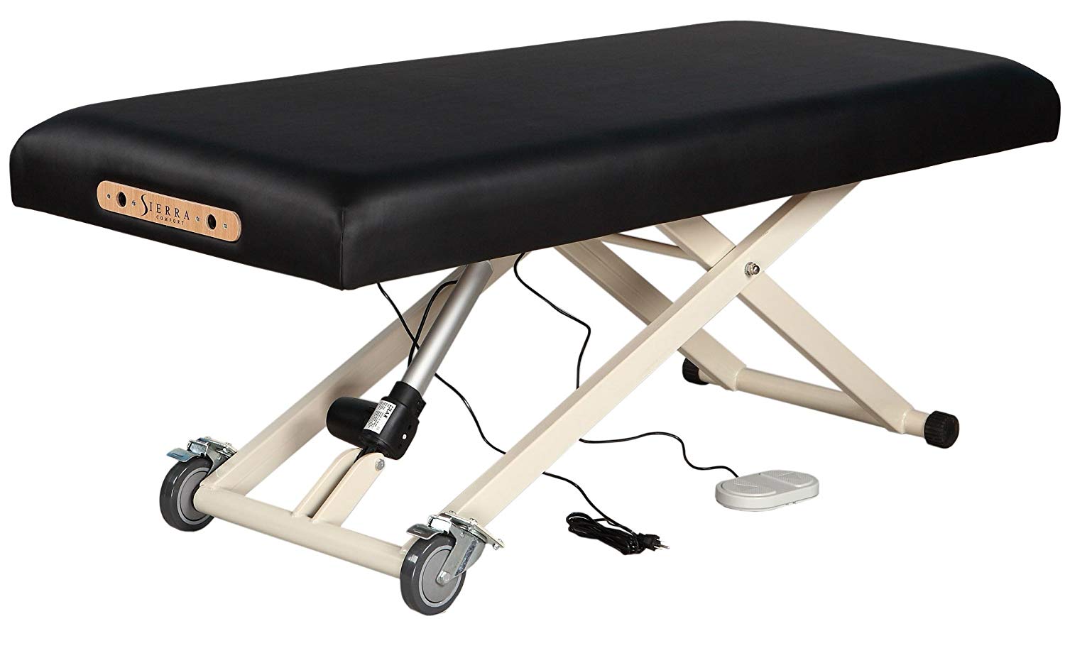 The Sierra Comfort SC-3000 Electric Lift Massage Table offers ease of use and exceptional comfort to your valued clients. The motorized scissor-leg-design allows you to raise and lower your patient to preferred elevations with a simple tap of the lift pedal. The table boasts 3" of foam padding and a premium accessories package for added comfort and versatility.
