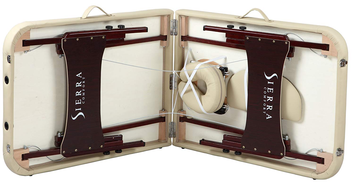Constructed of high quality hardwood and finished with a beautiful Mahogany stain, the Sierra Comfort SC-501-MF Preferred Portable Massage Table features 2- Inch of high density foam for a comfortable massage experience. The adjustable face cradle that is included with this product allows for comfortable positioning of the head. In addition, a convenient carry bag with shoulder strap, a starter pack of 3 disposable face cradle sheets and a forward swinging arm rest are included.