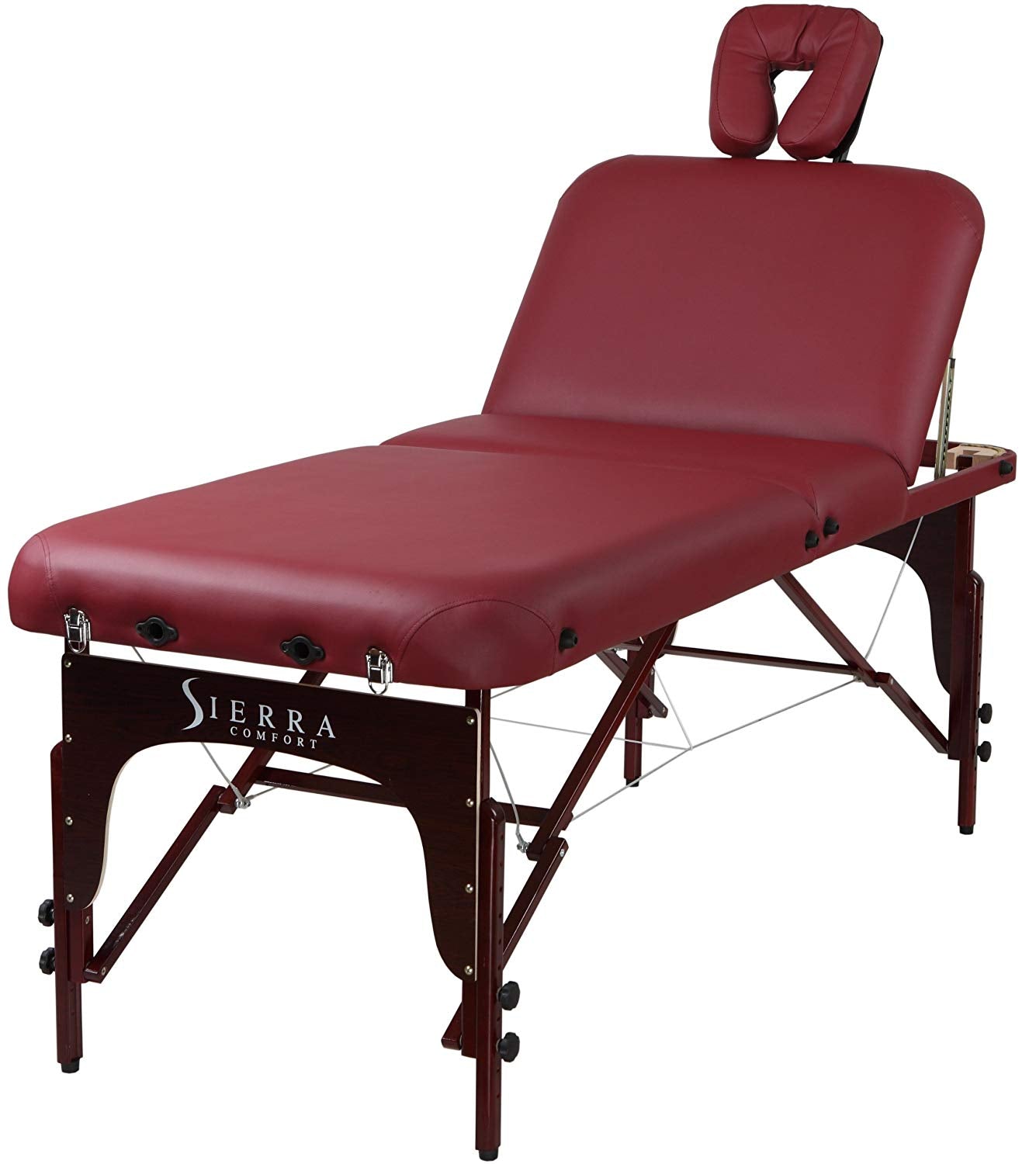 Sierra Comfort Premium Adjustable Backrest Portable Massage Table, Burgundy