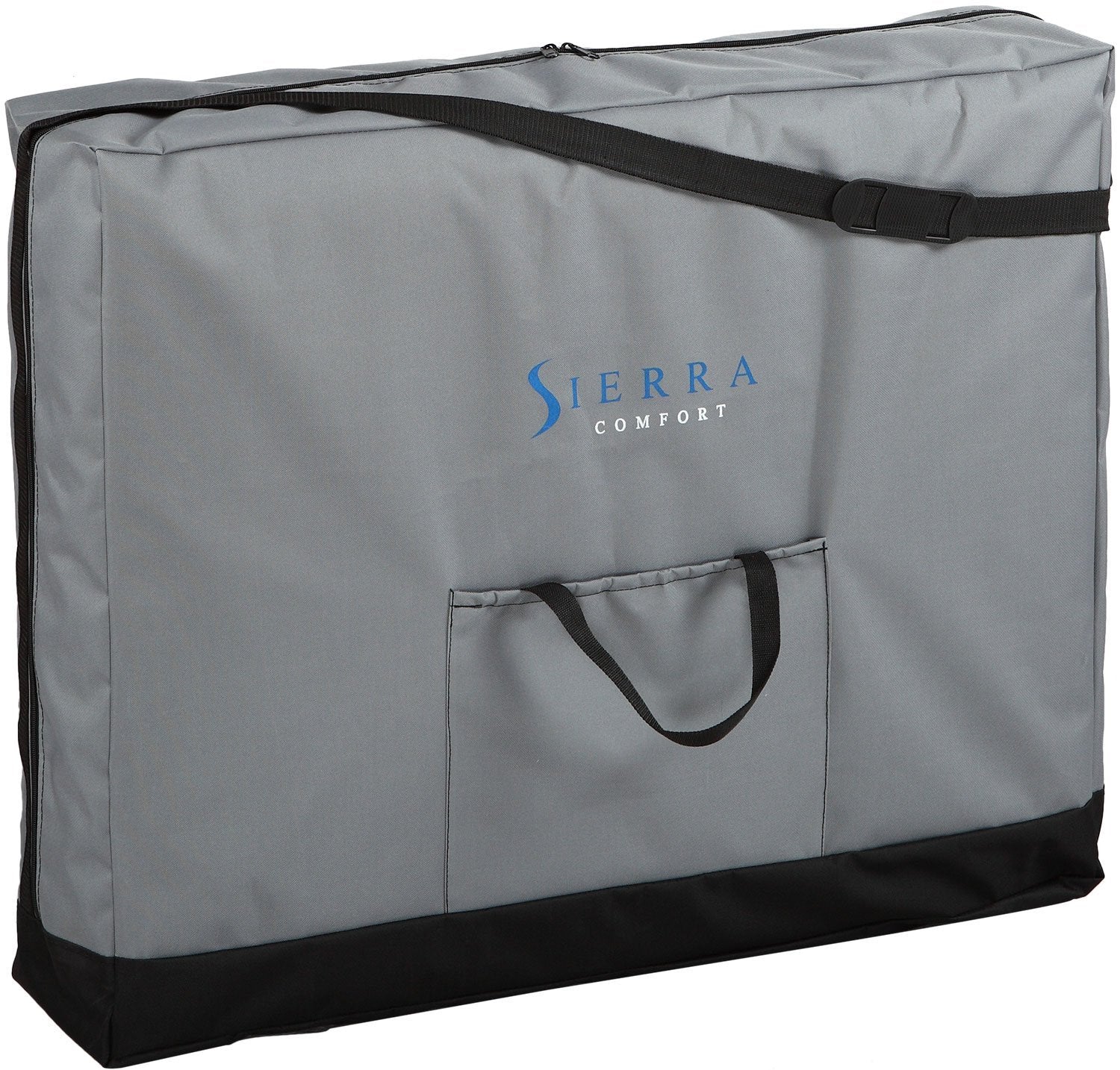 The Sierra Comfort Premium Portable Massage Table SC-1006 is a well equipped table with an adjustable backrest. The elegant mahogany finish makes the SC-1006 a favorite with those seeking a more tasteful look and fits in well in the luxury massage setting. Its features include rounded corners, an ergonomic adjustable face cradle, 3-Inch of memory foam, a hanging arm shelf and a premium carry case. In addition, this product provides flexible positioning with an adjustable backrest for an incline of up to 80 degrees and 10 adjustable backrest positions. The massage table is constructed of sustainable beech hardwood, including adjustable legs to fit the table to your height. Clients can relax into the adjustable ergonomic face cradle with a memory foam pad as well as support their arms with the forward hanging and detachable arm shelf. Conveniently tote your massage table in the included Sierra Comfort carry bag with shoulder strap.