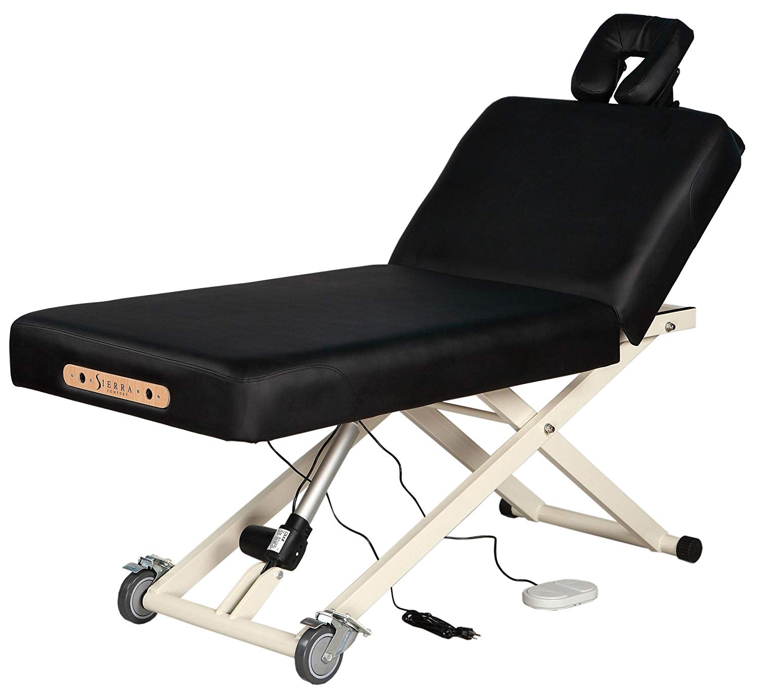 SierraComfort Adjustable Back Rest Electric Lift Massage Table, black