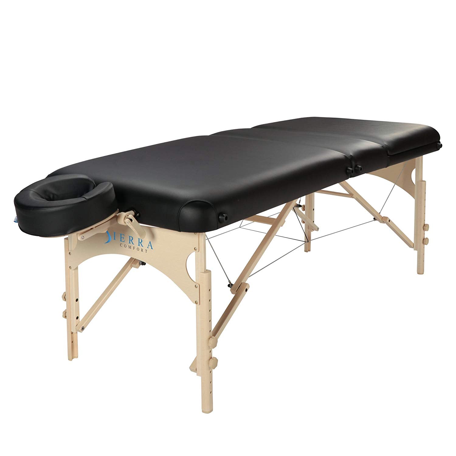 SierraComfort Deluxe Adjustable Backrest Portable Massage Table, Black
