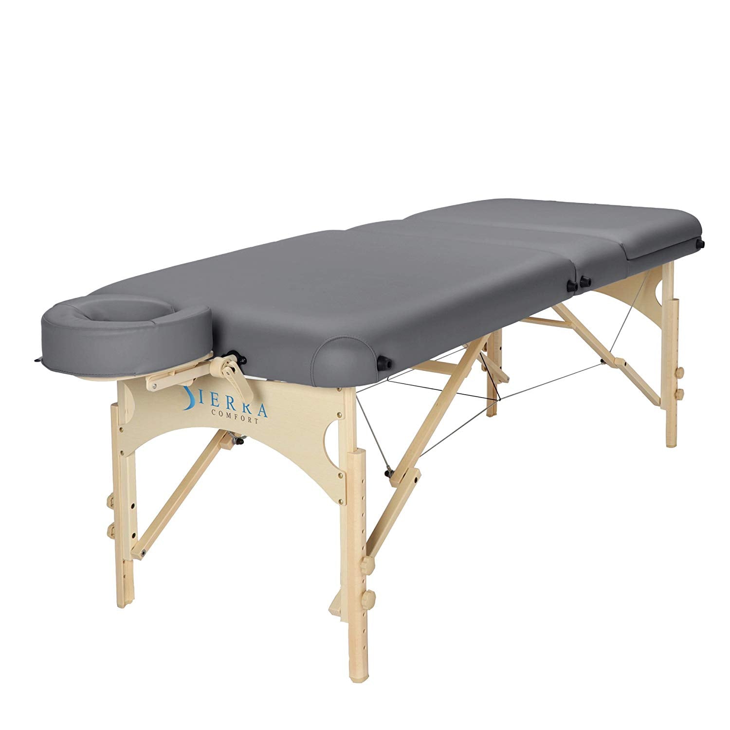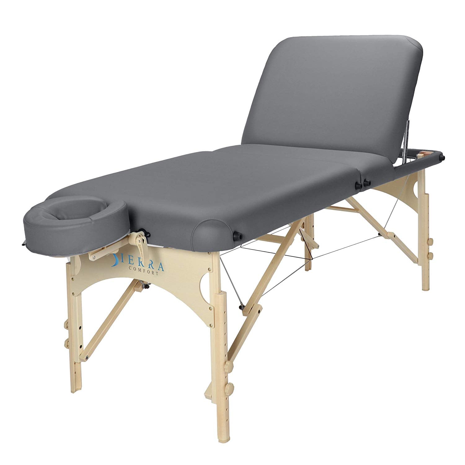 SierraComfort Deluxe Adjustable Backrest Portable Massage Table, Charcoal