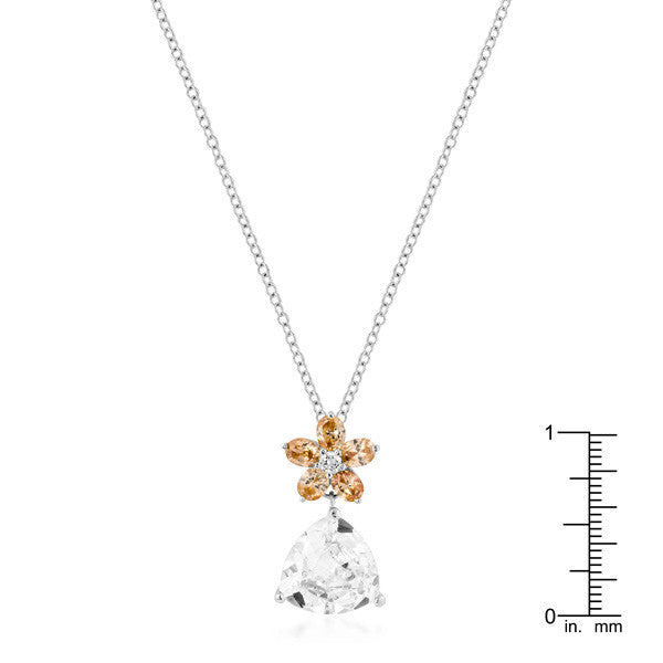 Genuine Rhodium Plated Floral Pendant with Trillion and Round Cut Cubic Zirconia Polished into a Lustrous Silvertone Finish