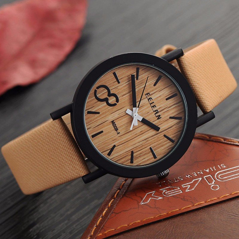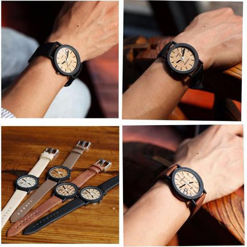 Simulation Wooden Relojes Quartz Men Watches Casual Wooden Color Leather Strap Watch Wood Male Wristwatch