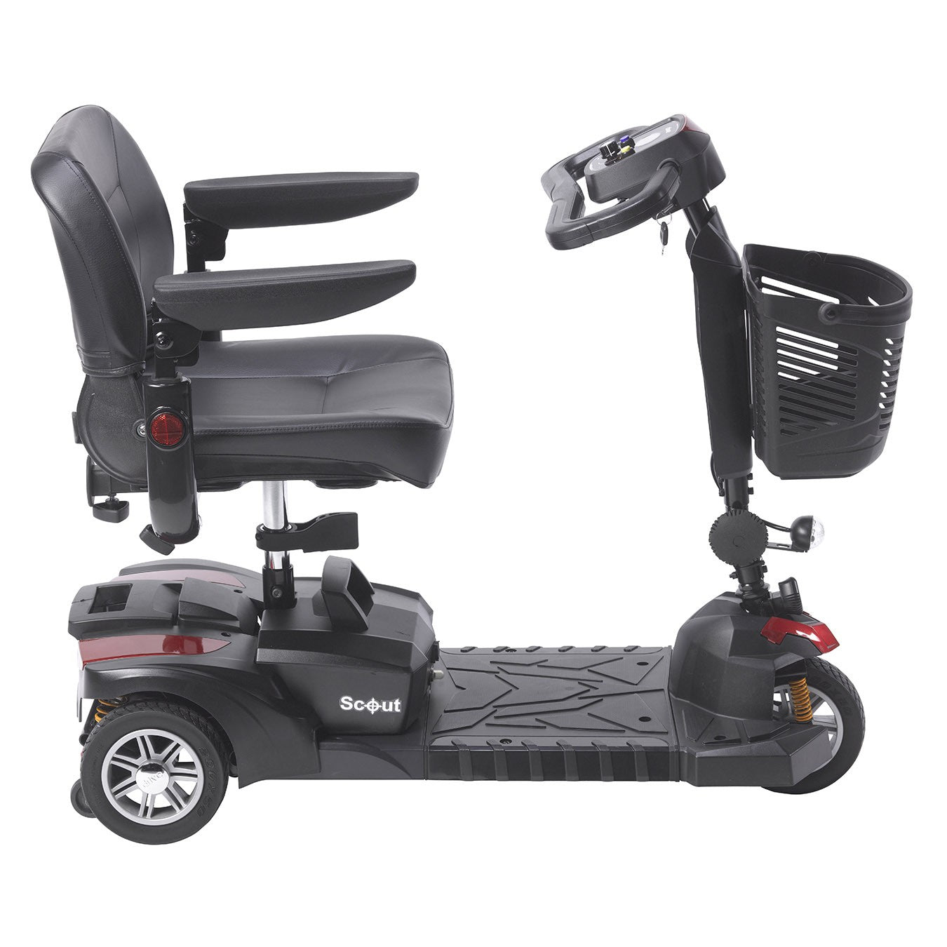 - The Spitfire DST (Dynamic Suspension Technology) transportable scooter combines easy and convenient mobility with the most comfortable ride possible. The Spitfire DST is compact, lightweight and easy to disassemble—perfect for taking wherever you want to go, either around the neighborhood or far from home. It can be disassembled quickly and easily into five easy-to-handle pieces for loading into a car, truck, or van and taking shopping or on vacation. The four-wheel version of the Spitfire DST allows for enhanced stability on rougher outdoor terrain, while the three-wheel version will provide a tighter turning radius. Both versions are equipped with Dynamic Suspension Technology on the front and rear of the scooter for the smoothest most comfortable ride possible. The Spitfire DST also offers great features like a quick connect battery pack and a delta-style tiller to make operating the scooter easier for those with limited strength or dexterity. This model comes with high gloss color panels, metallic wheel rims, and a stadium style seat.