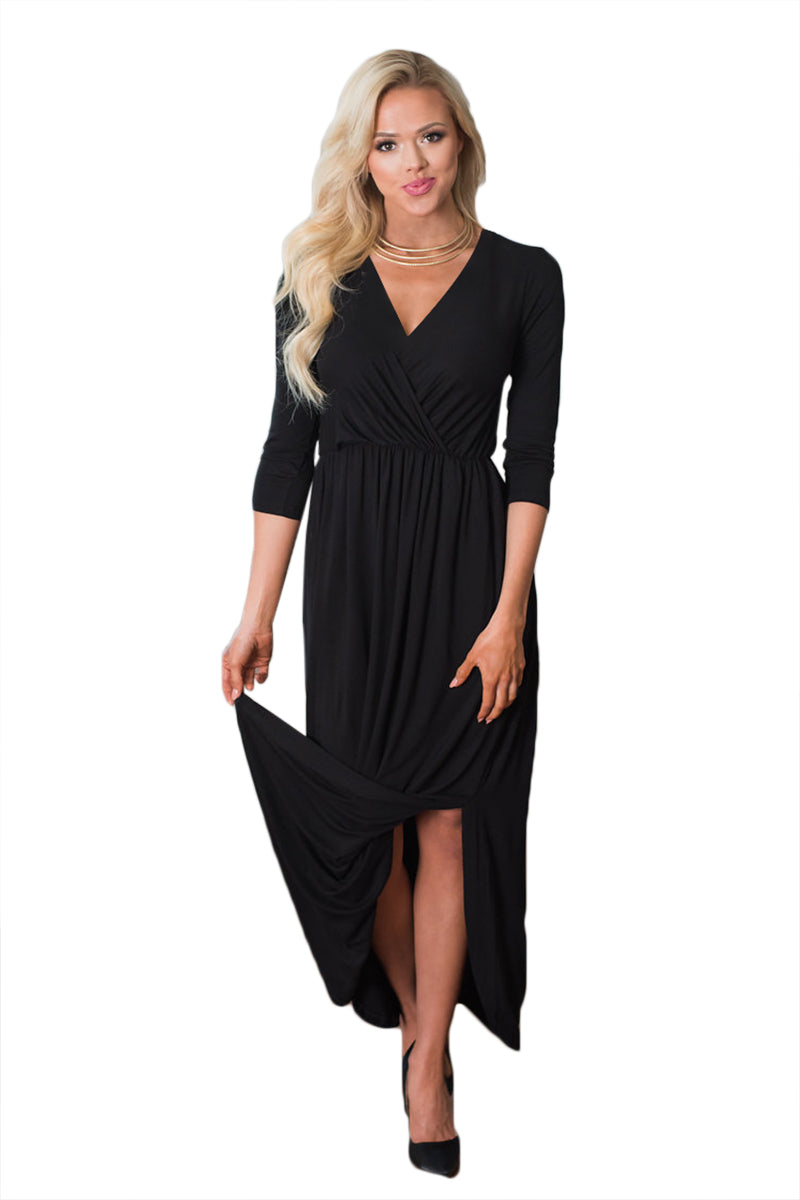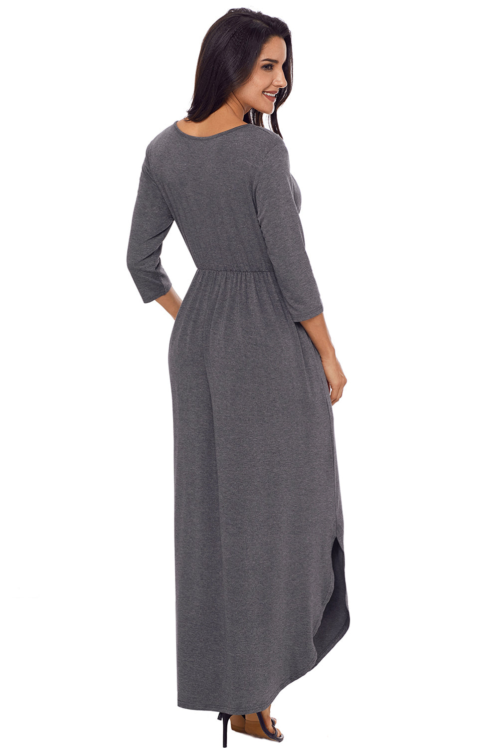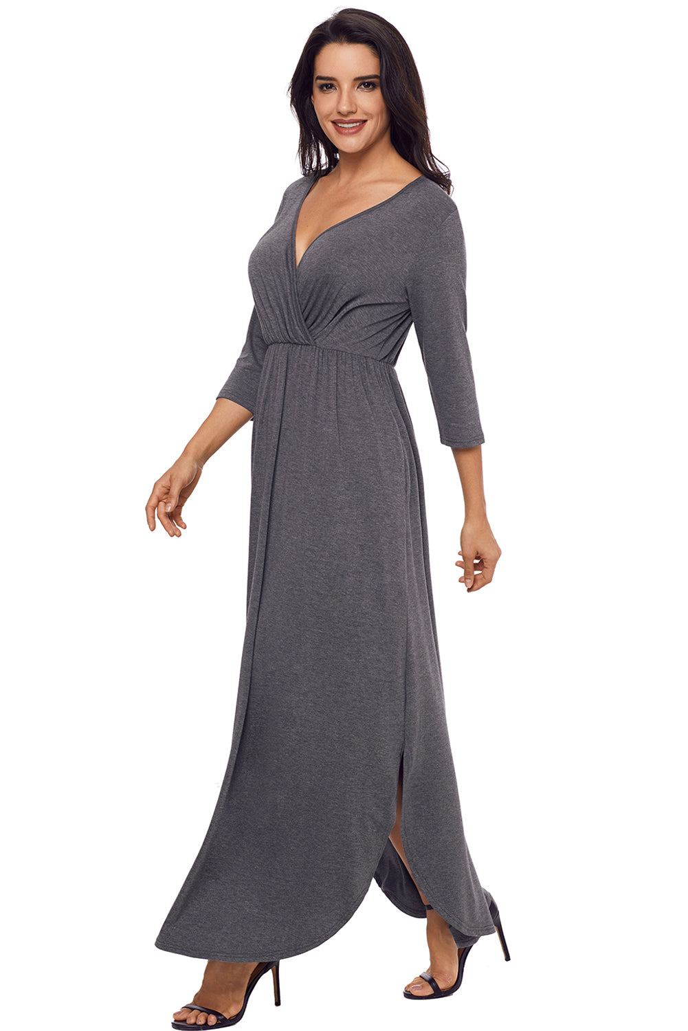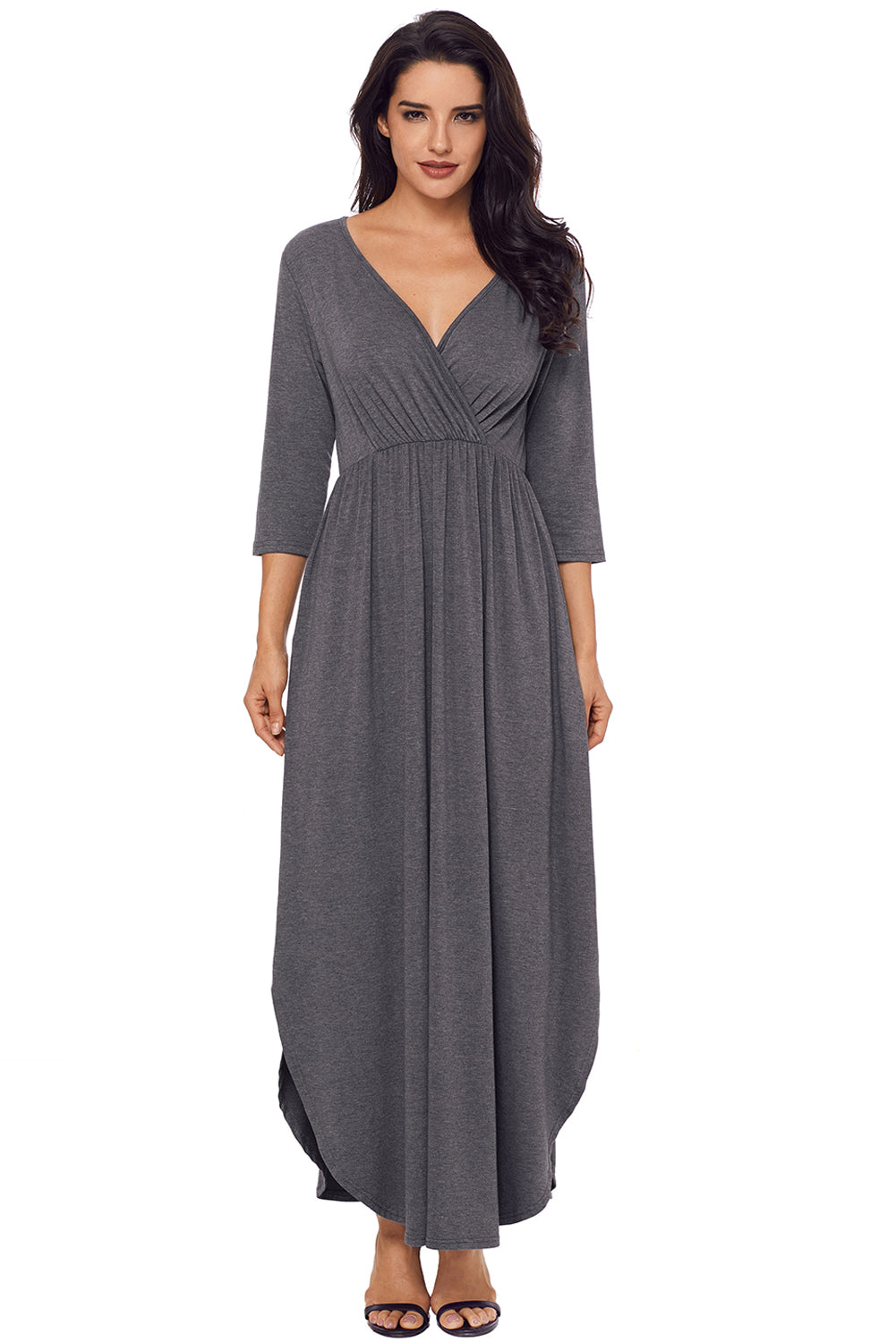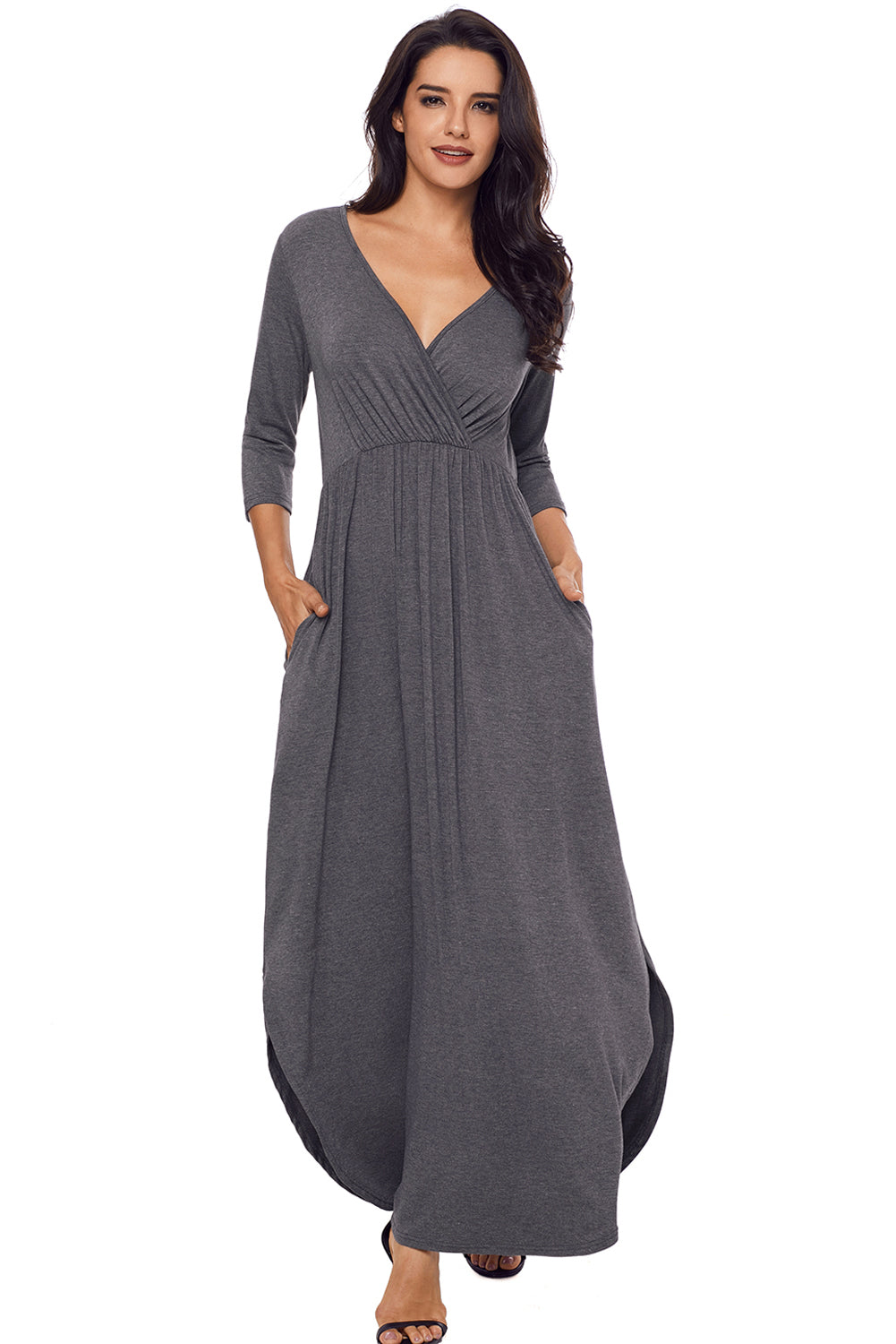 Surplice Neck High Waist Pleated Pocket Maxi Dress