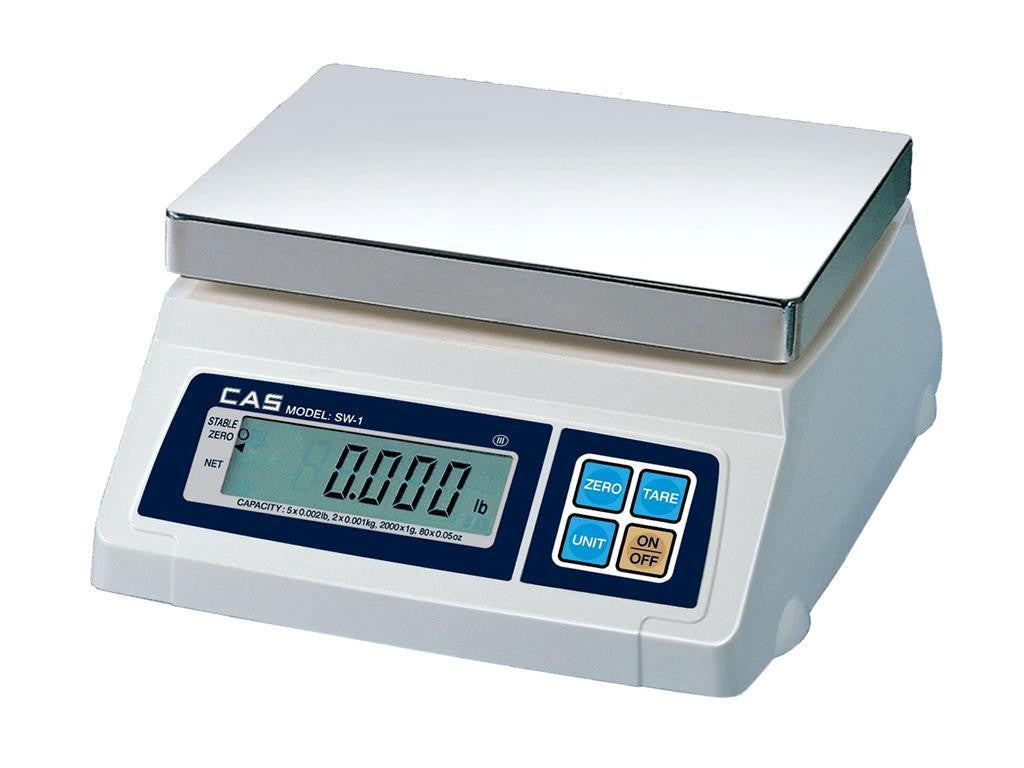 Brand New 50 LB CAS NTEP SW-Series Portion Control Retail ScaleCompact in design and easy to use portion control scale for use in a variety of applications. AC or battery operated and Legal for trade. 50 lb capacityBattery or AC Operatedlb/g/kg/oz switchableLarge Easy to Read 1"" LCD DisplayStainless Steel PlatterPlatter Size: 9.05(W) x 7.48(D) / 230(W) x 190(D) Dimensions: 10.23(W) x 11.29(D) x 5.39(H) , Metric 260(W) x 287(D) x 137(H) Full Body Protective Cover Included Legal for Trade 5, 10, 20 and 50lb scales all available, email for any other size