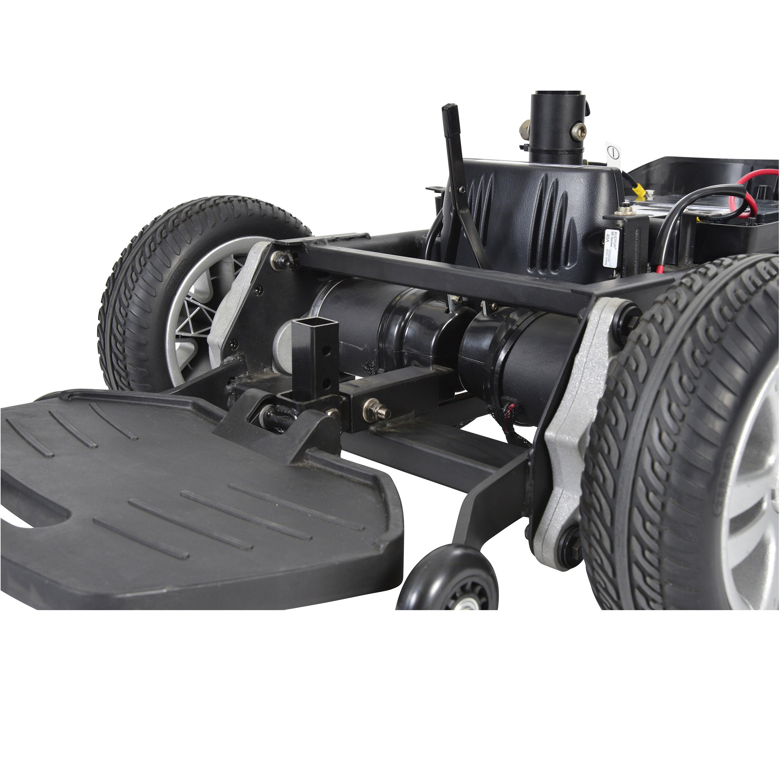 - Solid, flip-up footplate with adjustable height, depth and angle