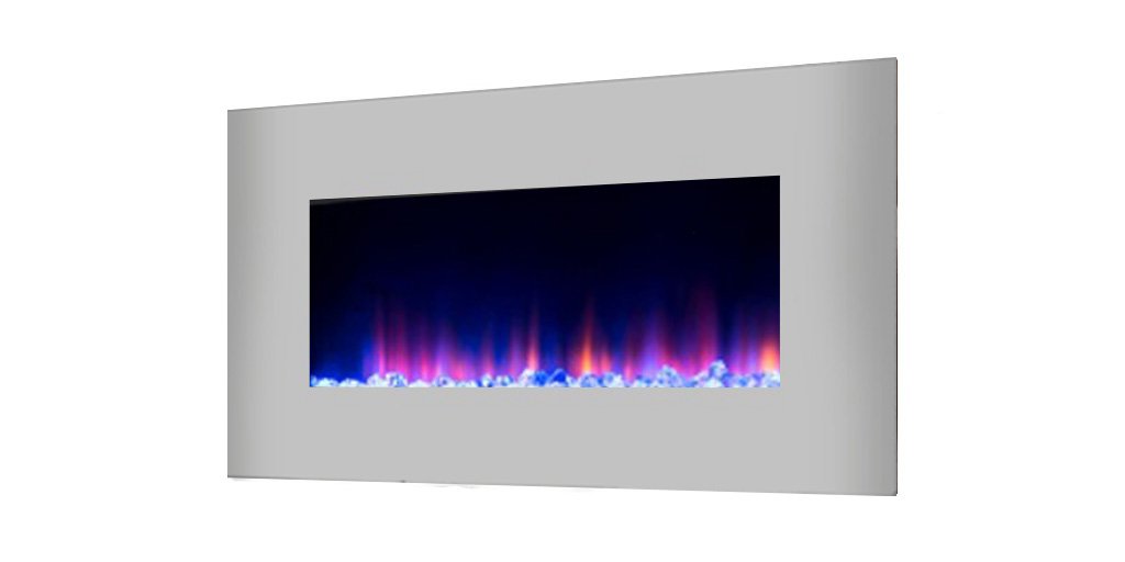 - AMBIENT GLOW: The Duo stainless wall-mounted electric fireplace unit is back lit to provide the room with a warm glow that sets the right kind of ambiance for any given situation.