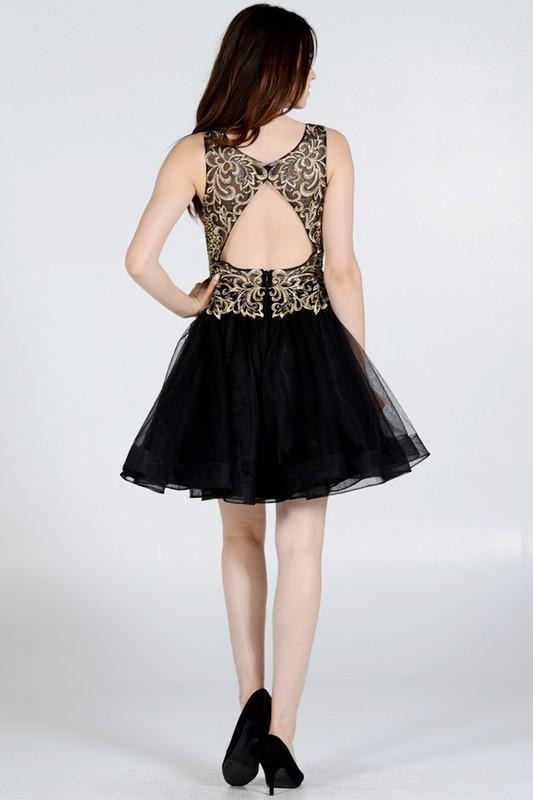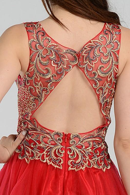 Step out in style with this trendy gold leaf embroidered bodice burgundy homecoming dress. A sleeveless v cut neckline, gold embroidered bodice adorned with light beading throughout bust and drop v back. This stunning homening dress also features a flare tulle skirt that is both fun and flirty. Rock this fabulous short formal dress at your next special occassion.
