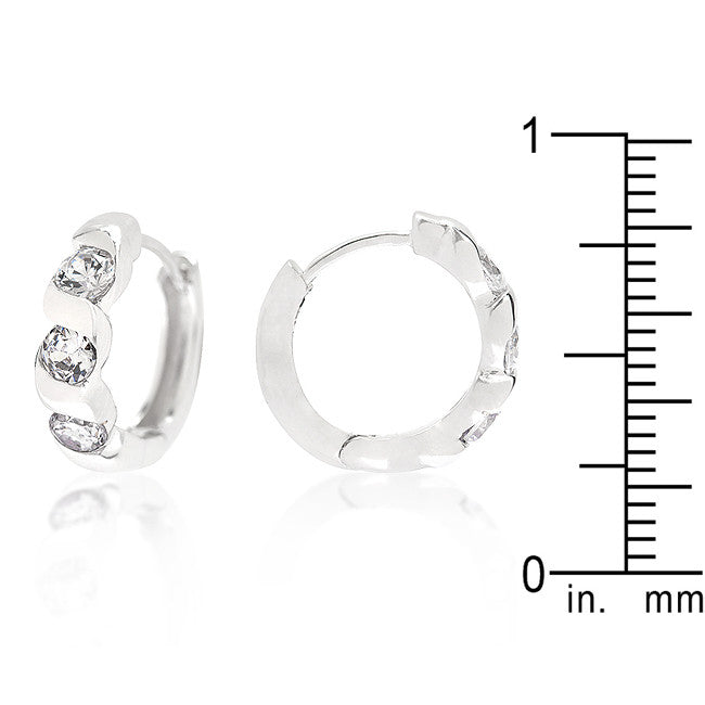 Genuine Rhodium Plated Hoop Earrings Featuring a Triplet of 3mm Cubic Zirconia Polished into a Lustrous Silvertone Finish