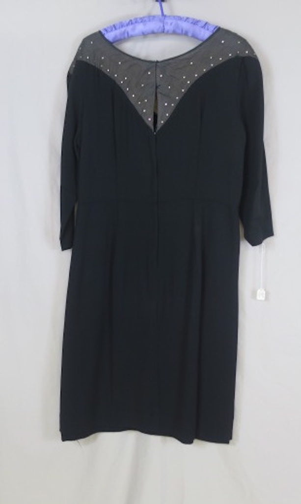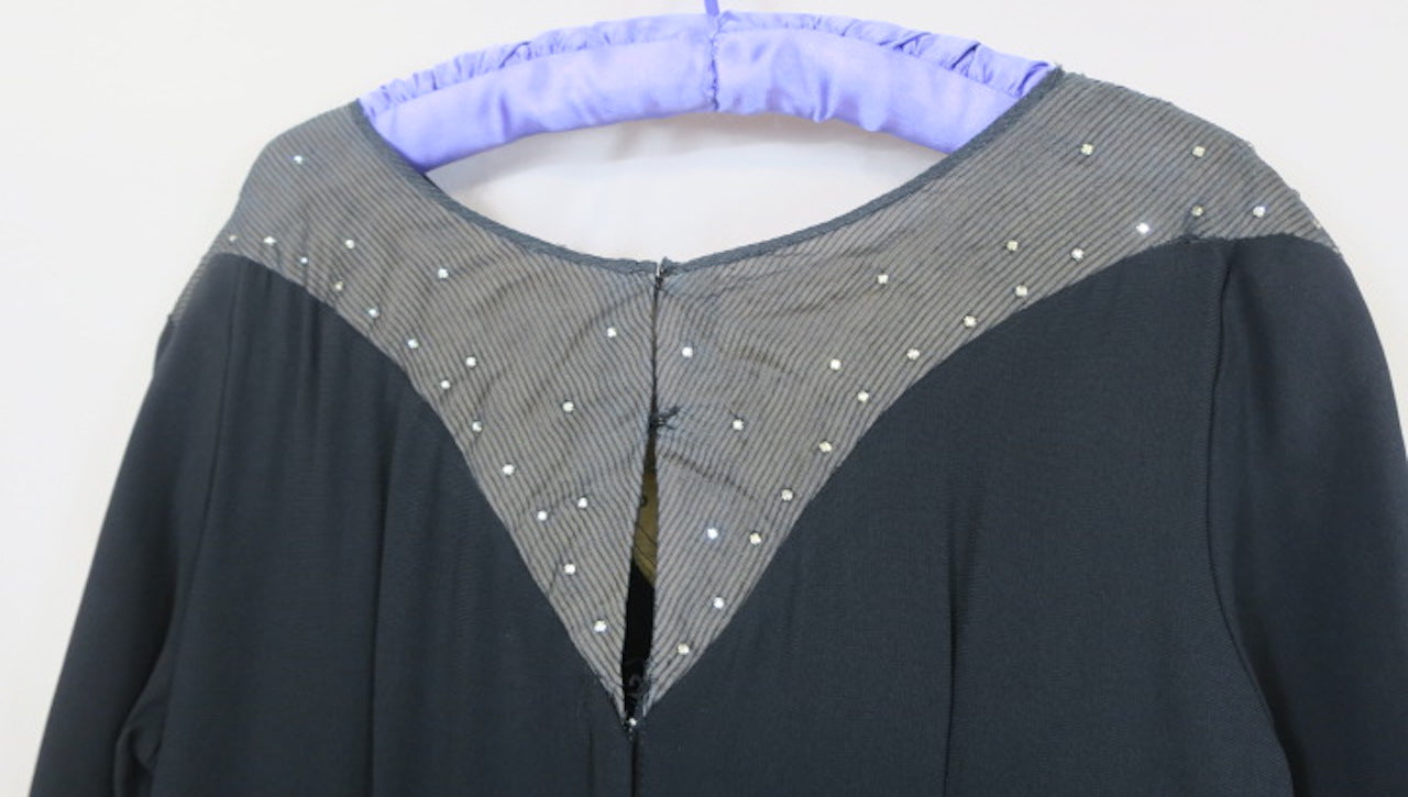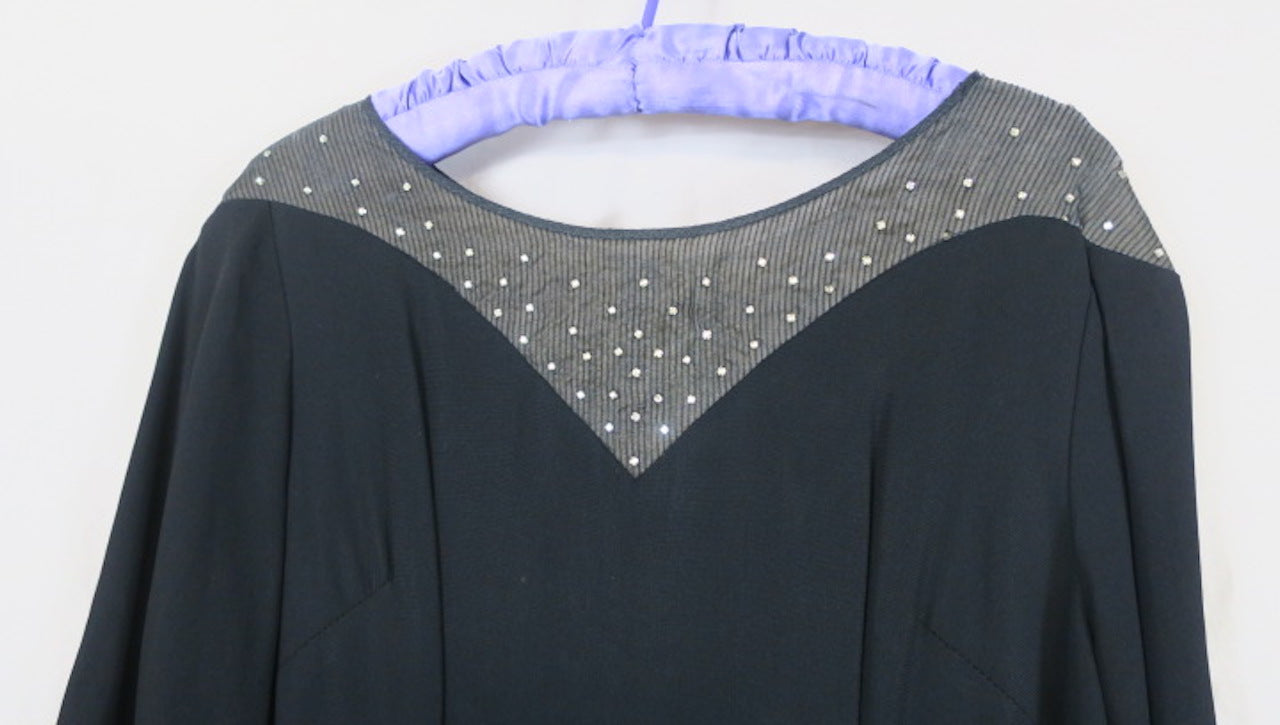 Vintage 50's/60's handmade longsleeve black V Accent dress, rhinestones
