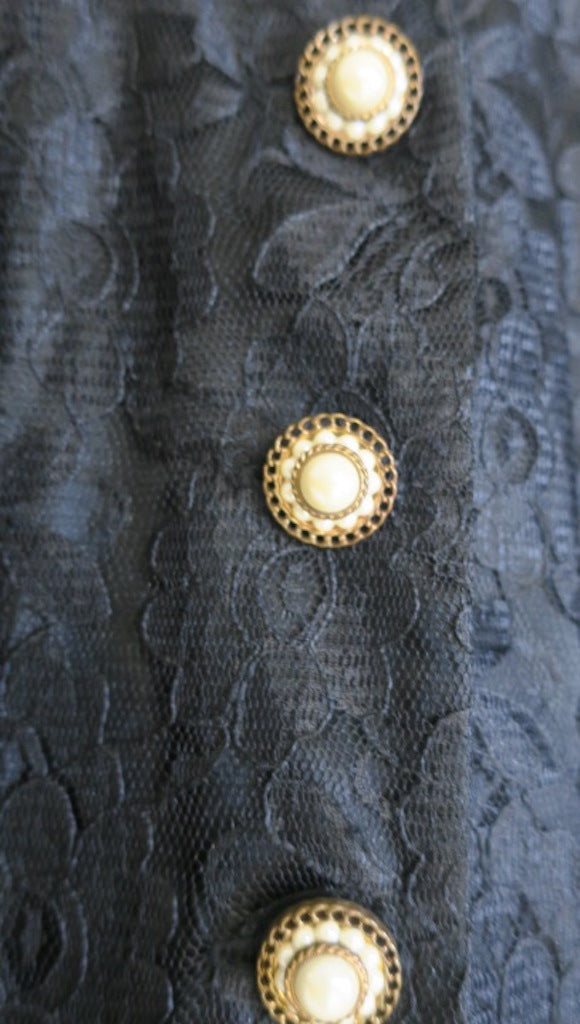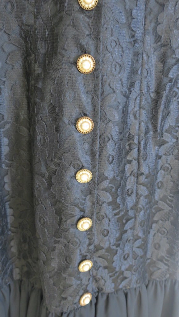 Vintage 80's Modest Longsleeve Lace Dress with Ruffle Flair & Gold/White Button detail