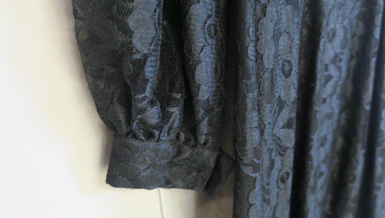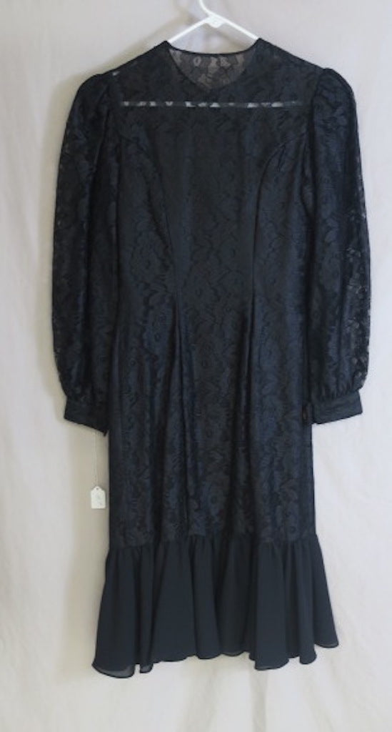 Vintage 80's Modest Longsleeve Lace Dress with Ruffle Flair & Gold/White Button detail. This vintage piece comes from a vintage store in upstate New York. The store closed and the inventory can be yours anywhere in the world! Measurements are listed when possible. If not, please ask and we will get back to you ASAP. This collection is stored away from my homebase, a 4 day handling time is listed, though it’s very possible it can ship within 24 hours. Please alert me if you need this item quickly! Each piece is final sale due to the unique nature of the garments, so be sure to ask anything you are unsure about.