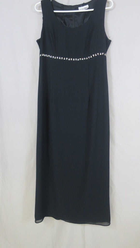 Vintage After Dark 90's long black dress, rhinestone empire waist cutout detail, medium