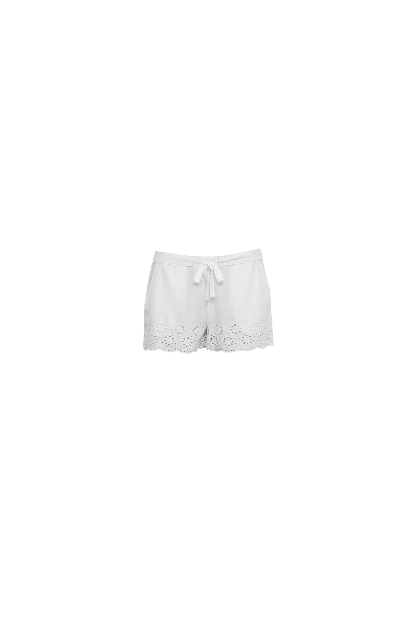 "Super soft, luxurious and lightweight pyjama short with solid fabric trims Short: 100% Modal Ultra soft V neck Lace attached at the neck, cut work embroidery around the bottom and straight bottom This model is sold separately as well as a Pajama Set to give extra choice in pant styles, top and sizes. WARNING ? KEEP AWAY FROM FIRE AND FLAMES Machine wash, wash at 30°, inside out, wash dark colors separately, do not soak, do not iron trim, save energy "