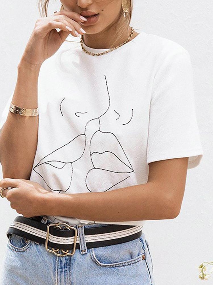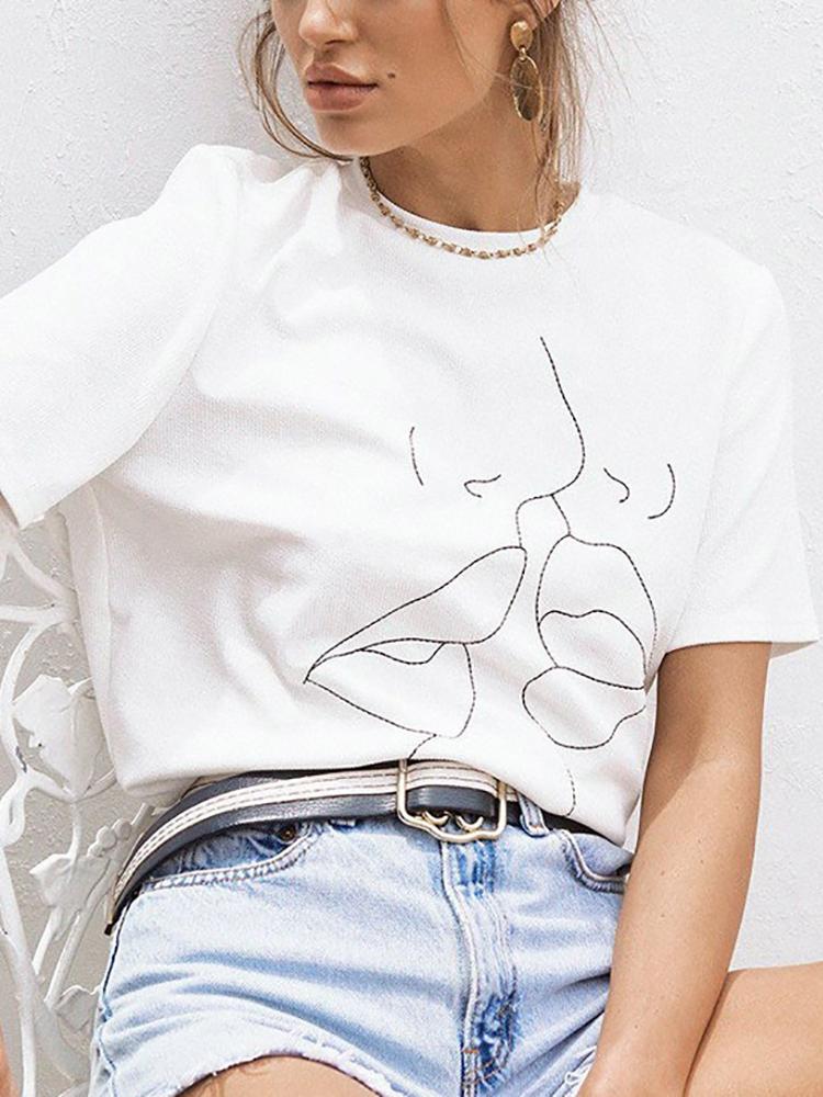 White Short Sleeve Print Casual T-shirt