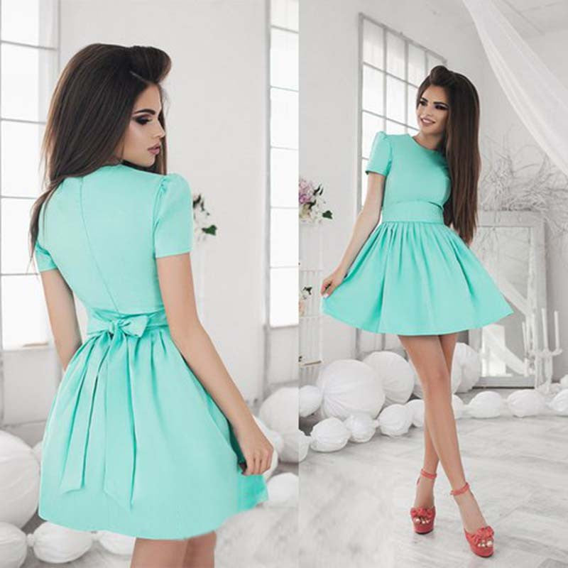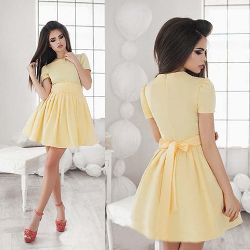 Women summer new cute fit and flare solid sleeveless regular sleeve empire o-neck above knee mini dress with sashes