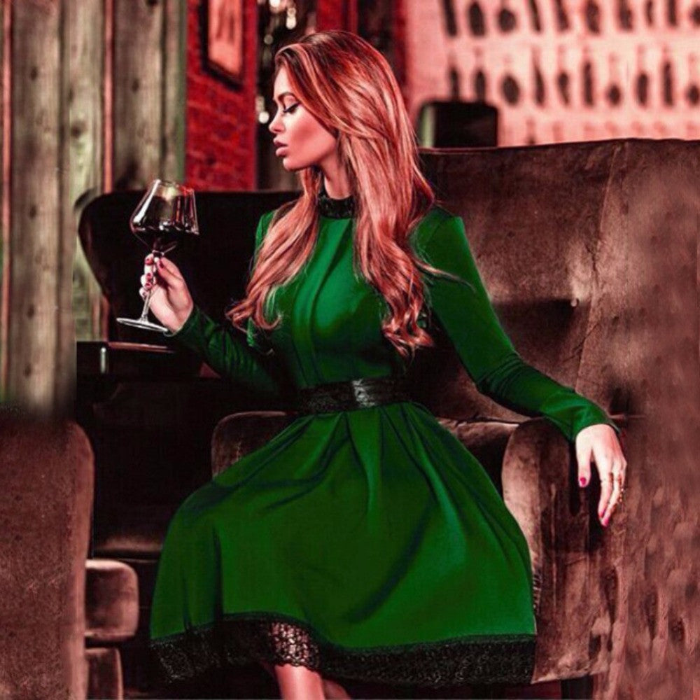 Yomsong Promotion New Fashion Women Sexy Long Sleeve Slim Maxi Dresses Green Party Dresses Hot