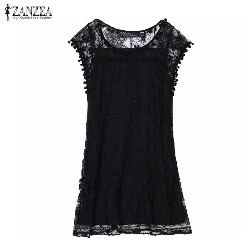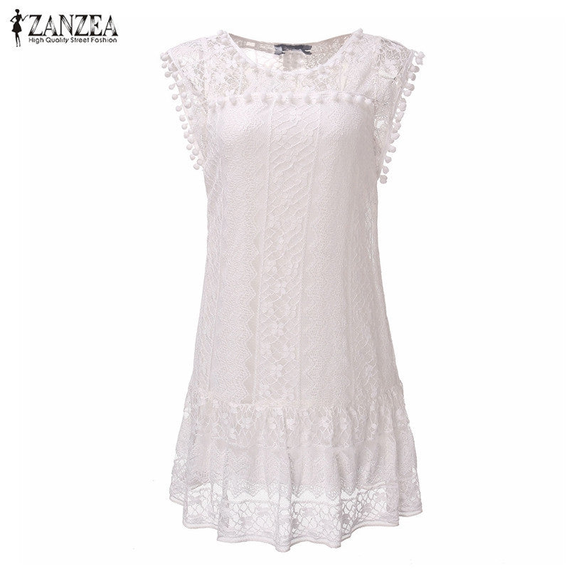 Zanzea Summer Dress 2016 Sexy Women Casual Sleeveless Beach Short Dress Tassel Solid White Mini Lace Dress Vestidos Plus Size