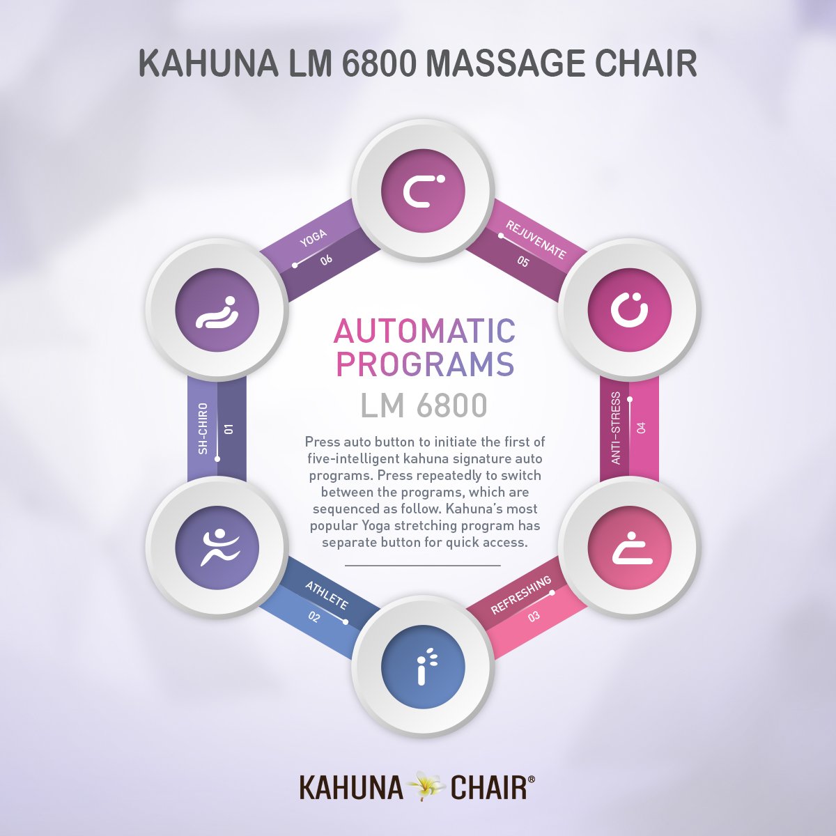 - LM-6800 is a specially designed L-track frame structure massage chair with 4 rollers along with air-cell massage system that effectively massages your shoulders, arms, waist, and hips.